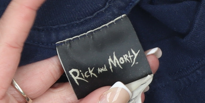 Rick and Morty Men's Blue Cotton Graphic T-Shirt Size M