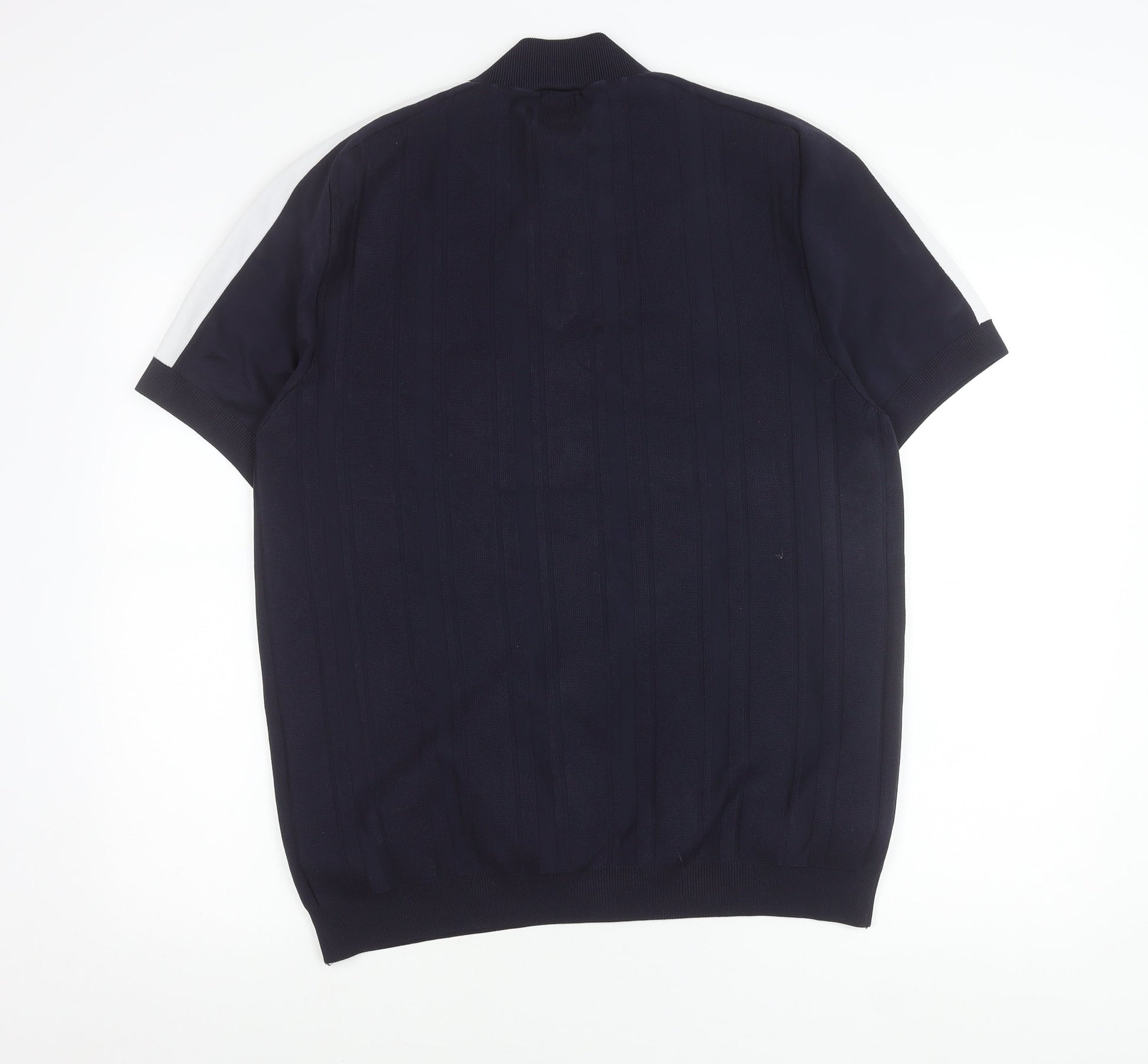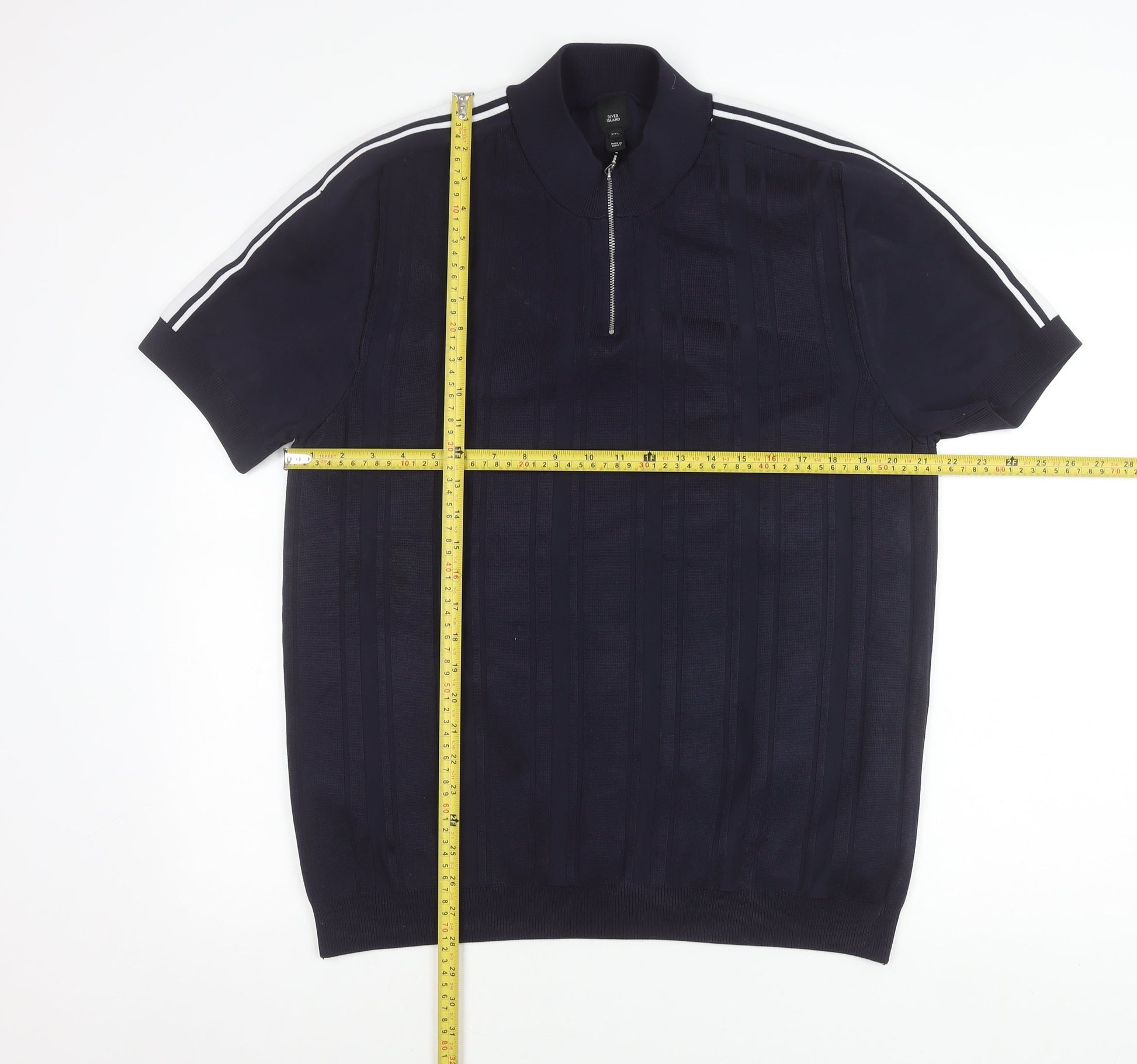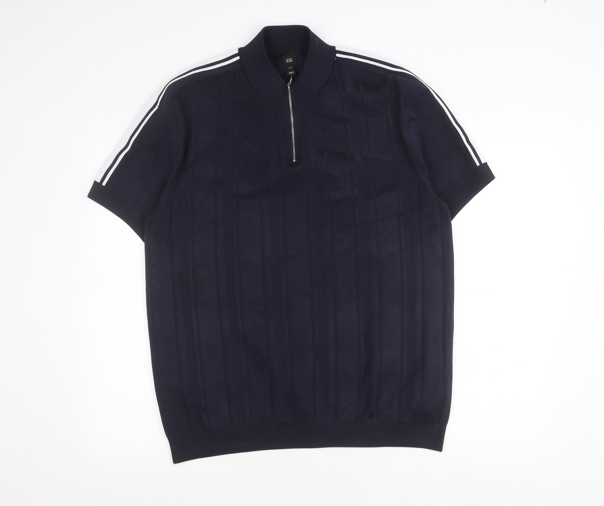 River Island Men’s 2XL Blue Striped Knit Half Zip T-Shirt
