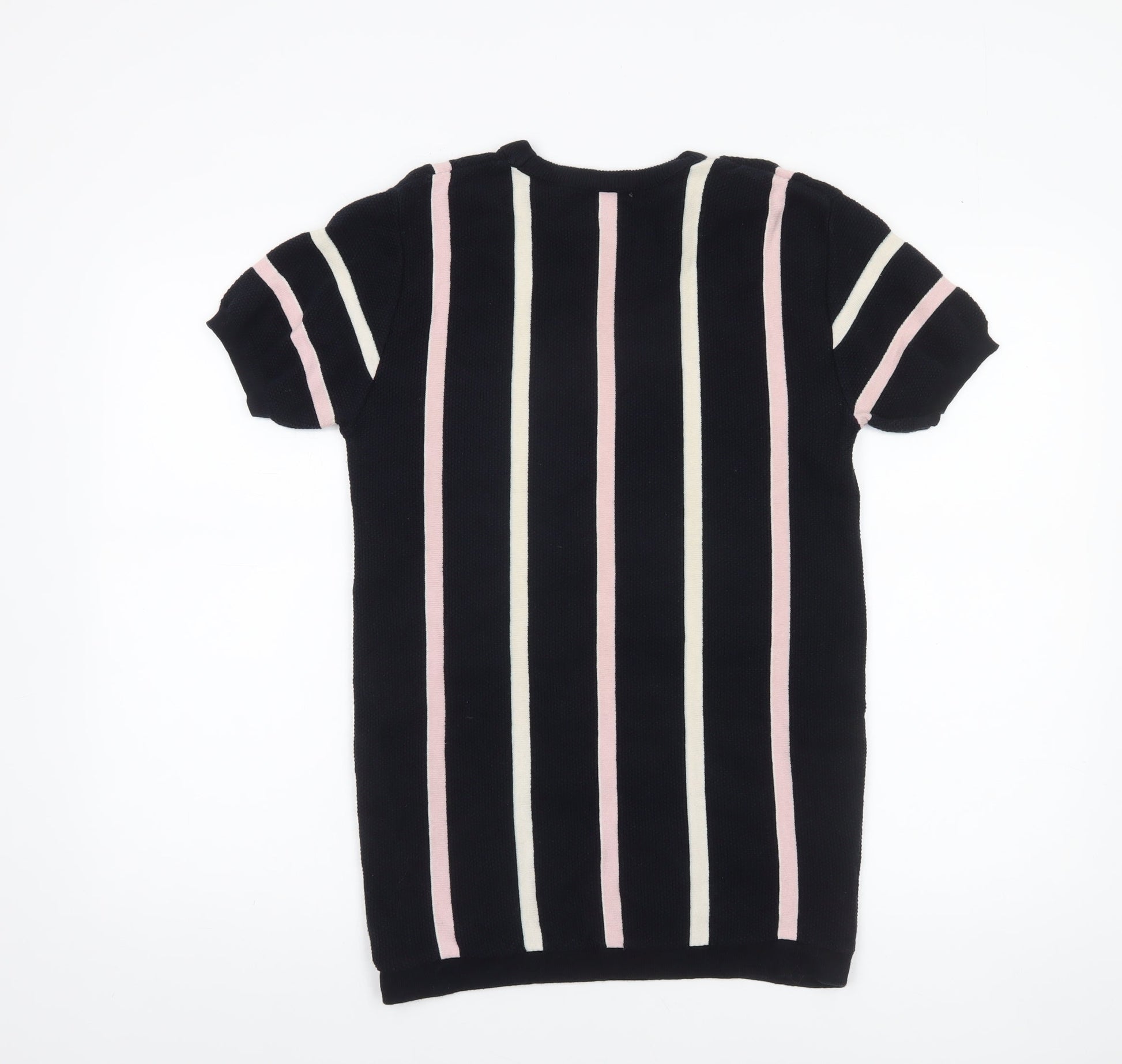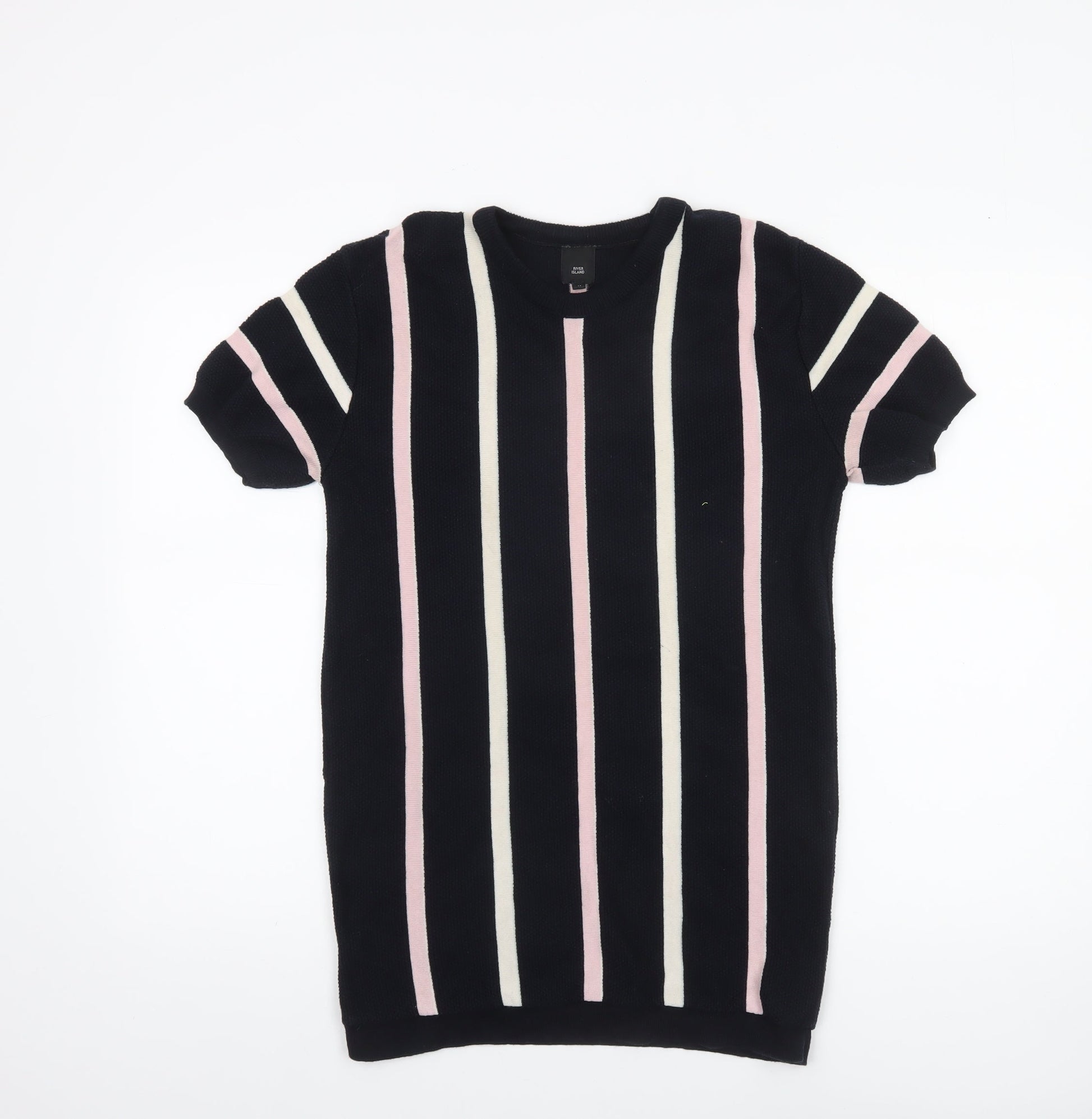 River Island Men’s Black Striped Short Sleeve Pullover Jumper M