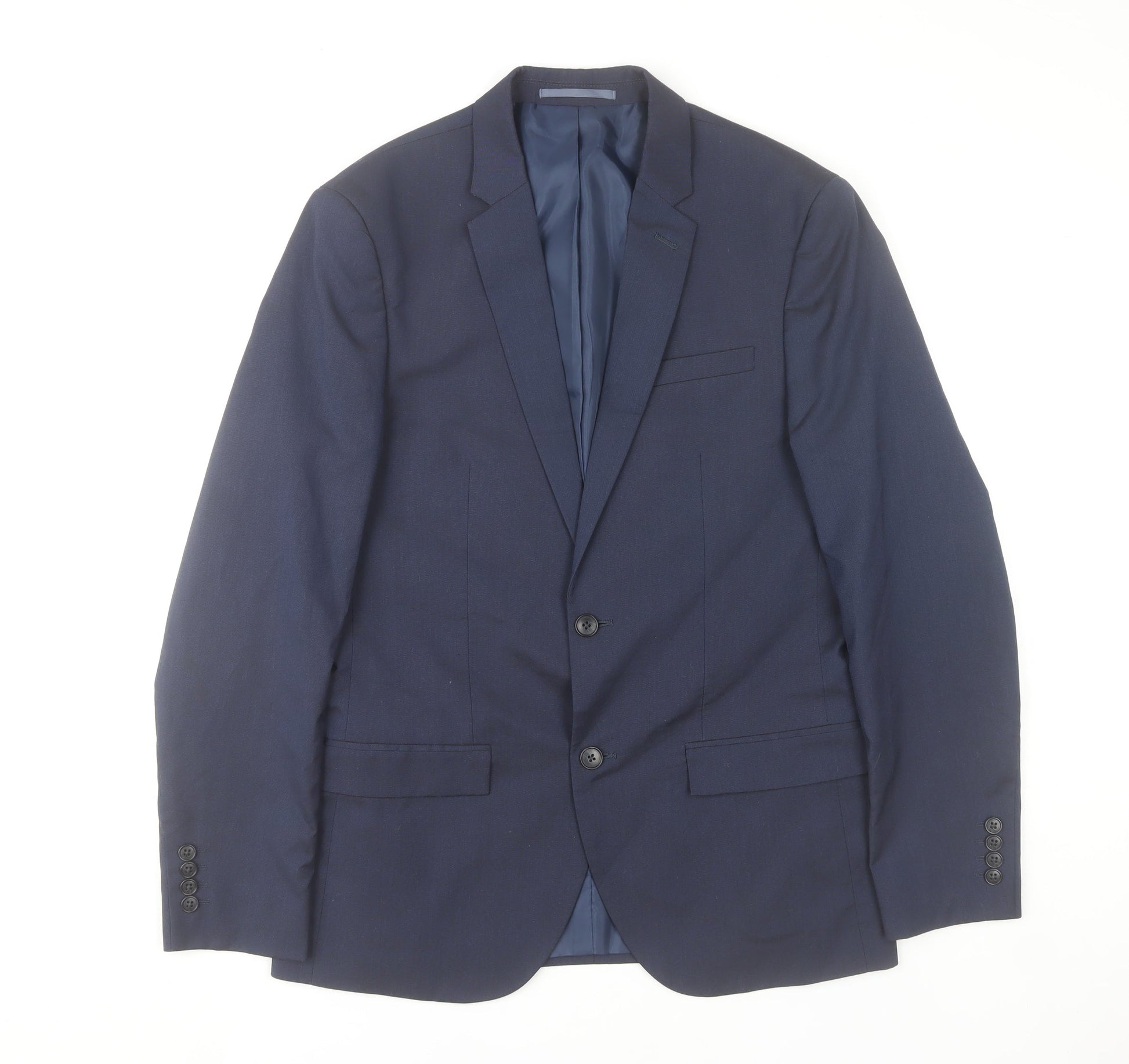 River Island Men’s Blue Suit Jacket 40R Notch Lapel Two-Button