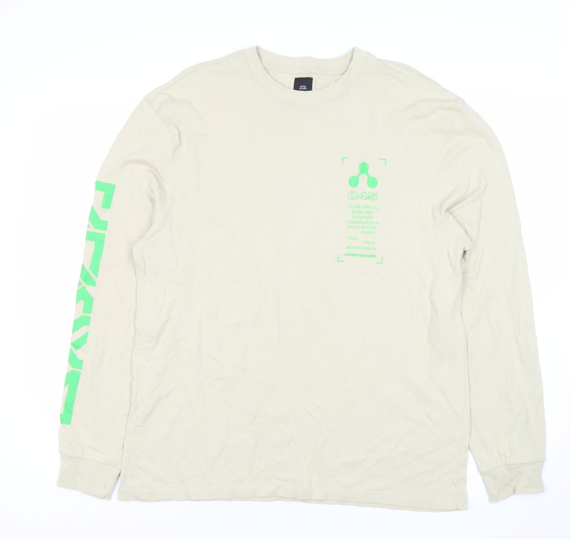 River Island Men's Beige Graphic Print T-Shirt M