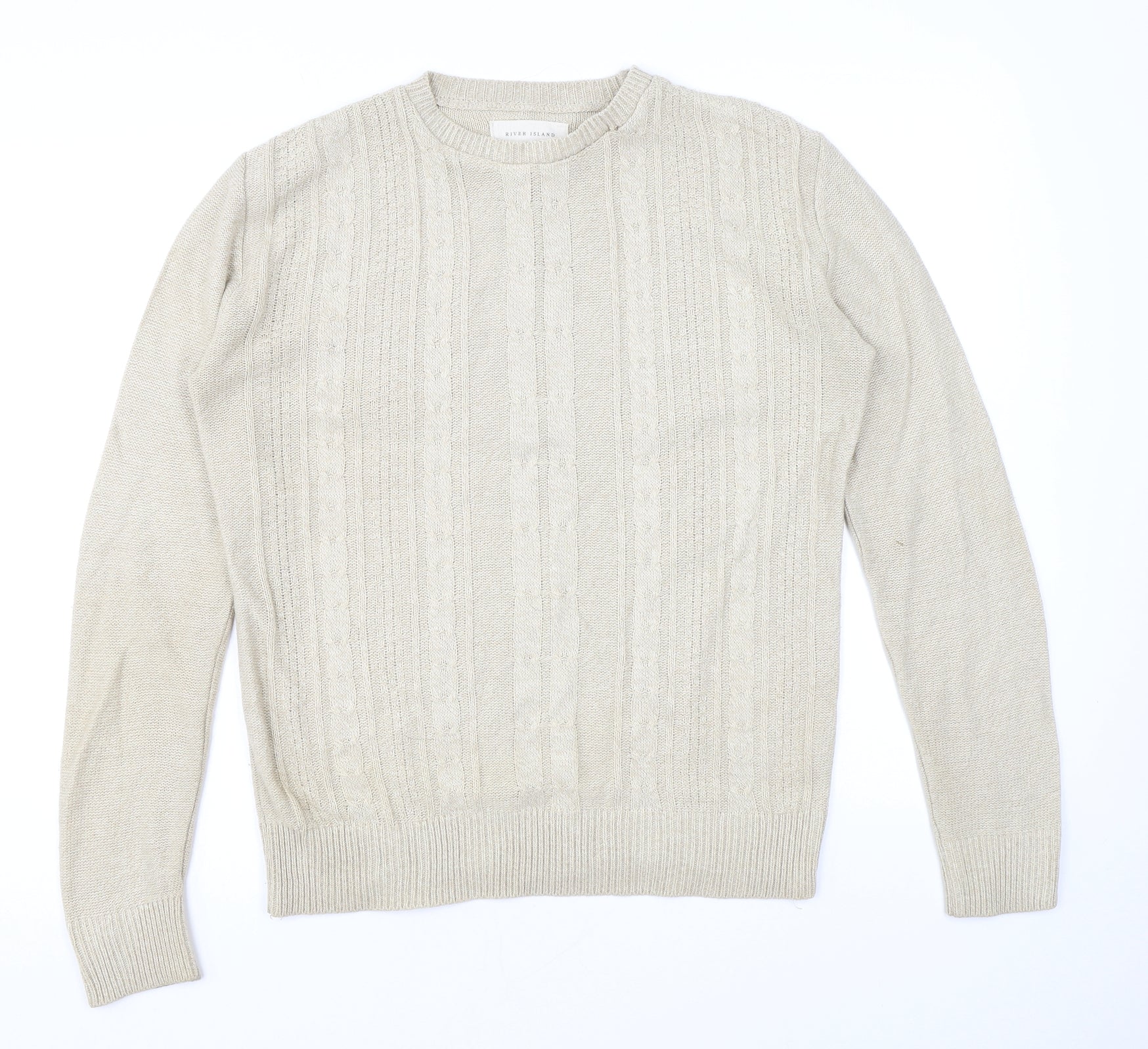 River Island Mens Beige Round Neck Acrylic Pullover Jumper Size XS Long Sleeve