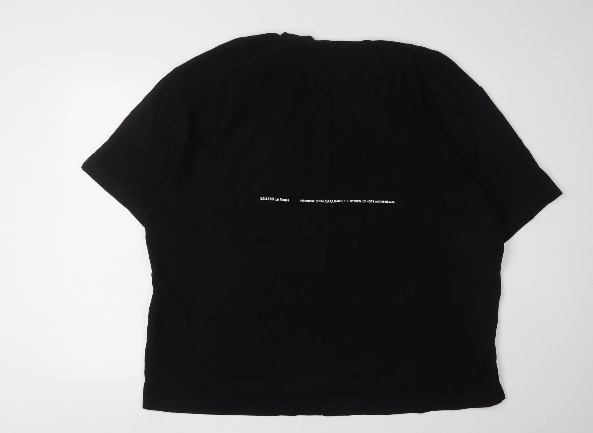 River Island Men's Black Floral Graphic T-Shirt 2XL