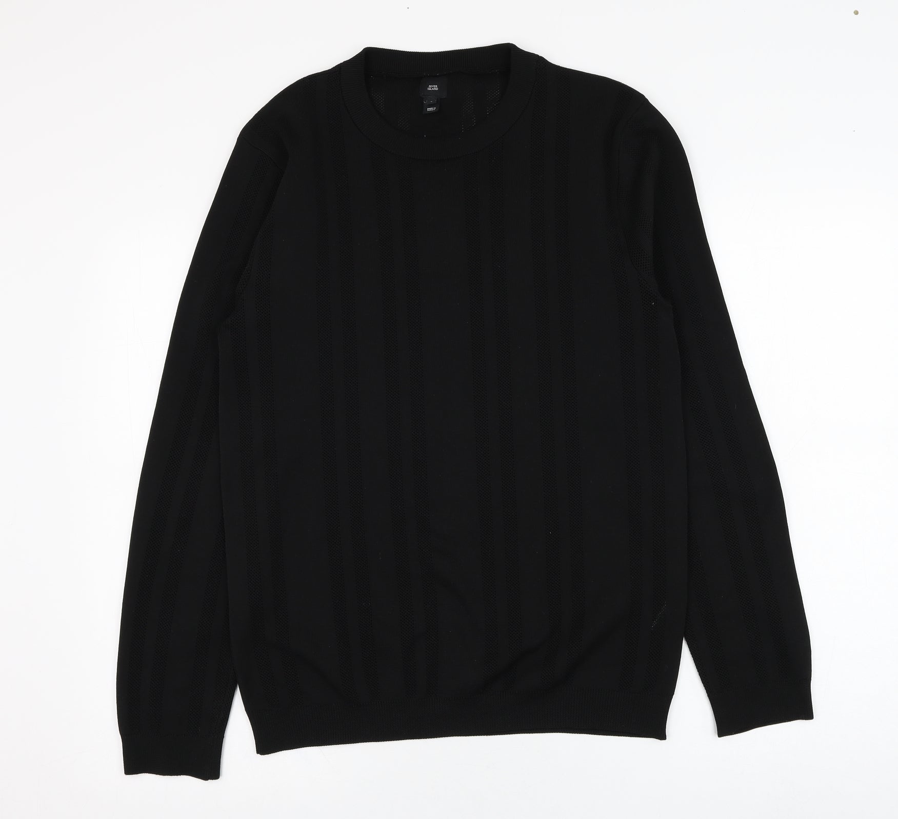 River Island Mens Black Round Neck Polyester Pullover Jumper Size L