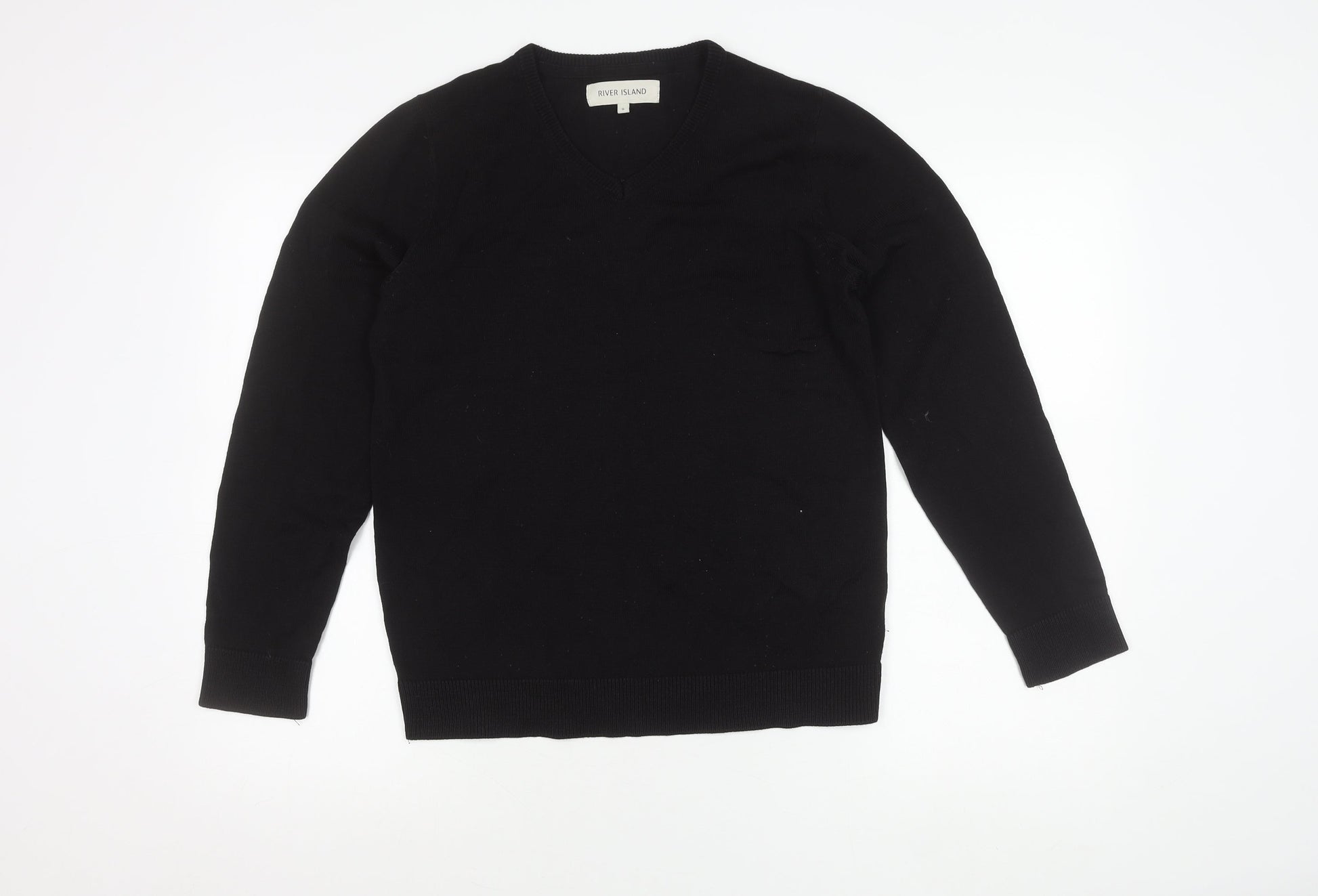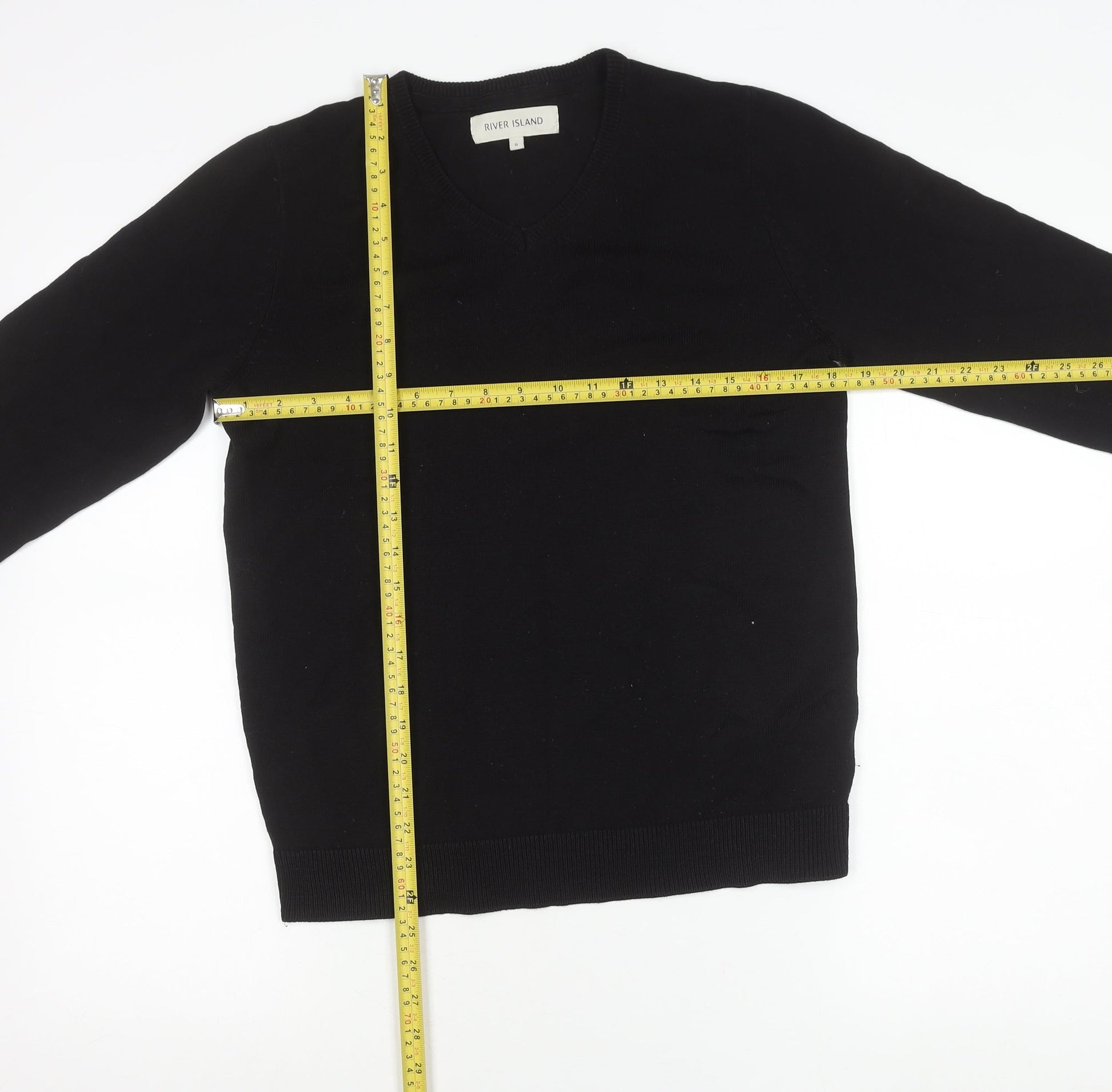 River Island Men's Black V-Neck Cotton Pullover Jumper Size S