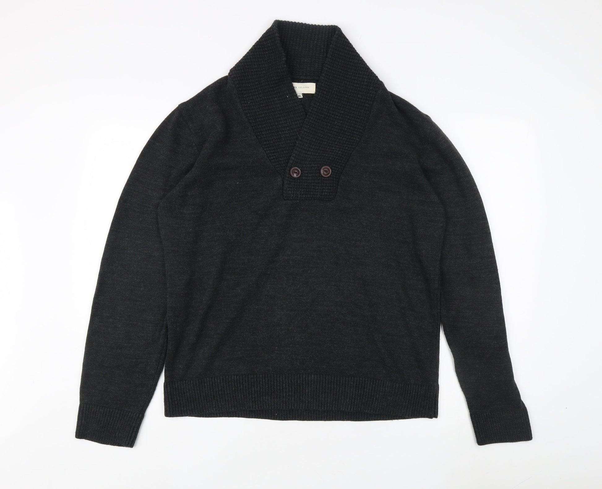 River Island Men's Black XL Jumper, Button Accent