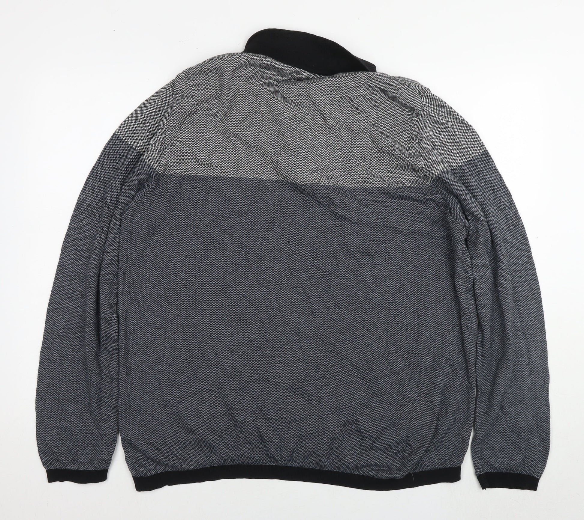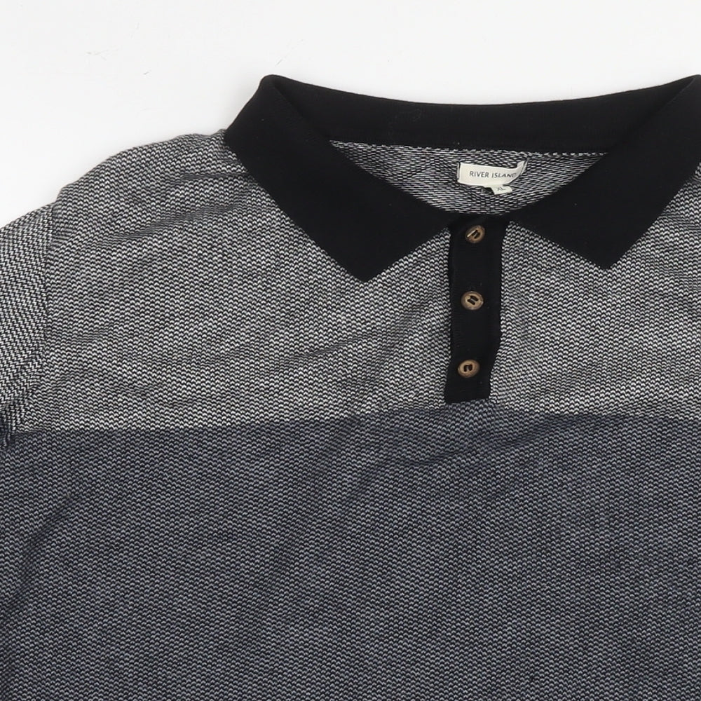 River Island Mens Blue Collared Cotton Pullover Jumper Size XL Long Sleeve
