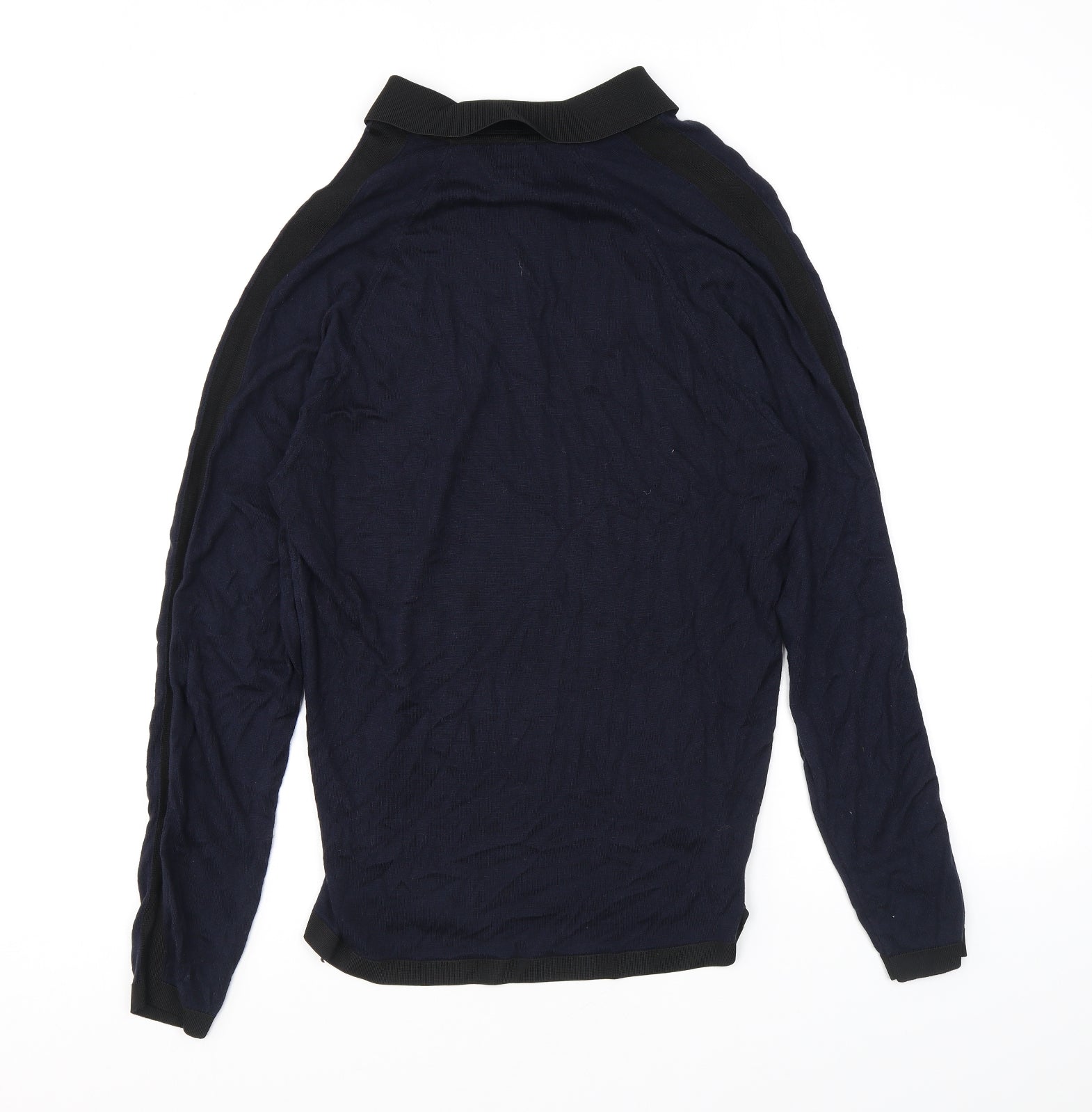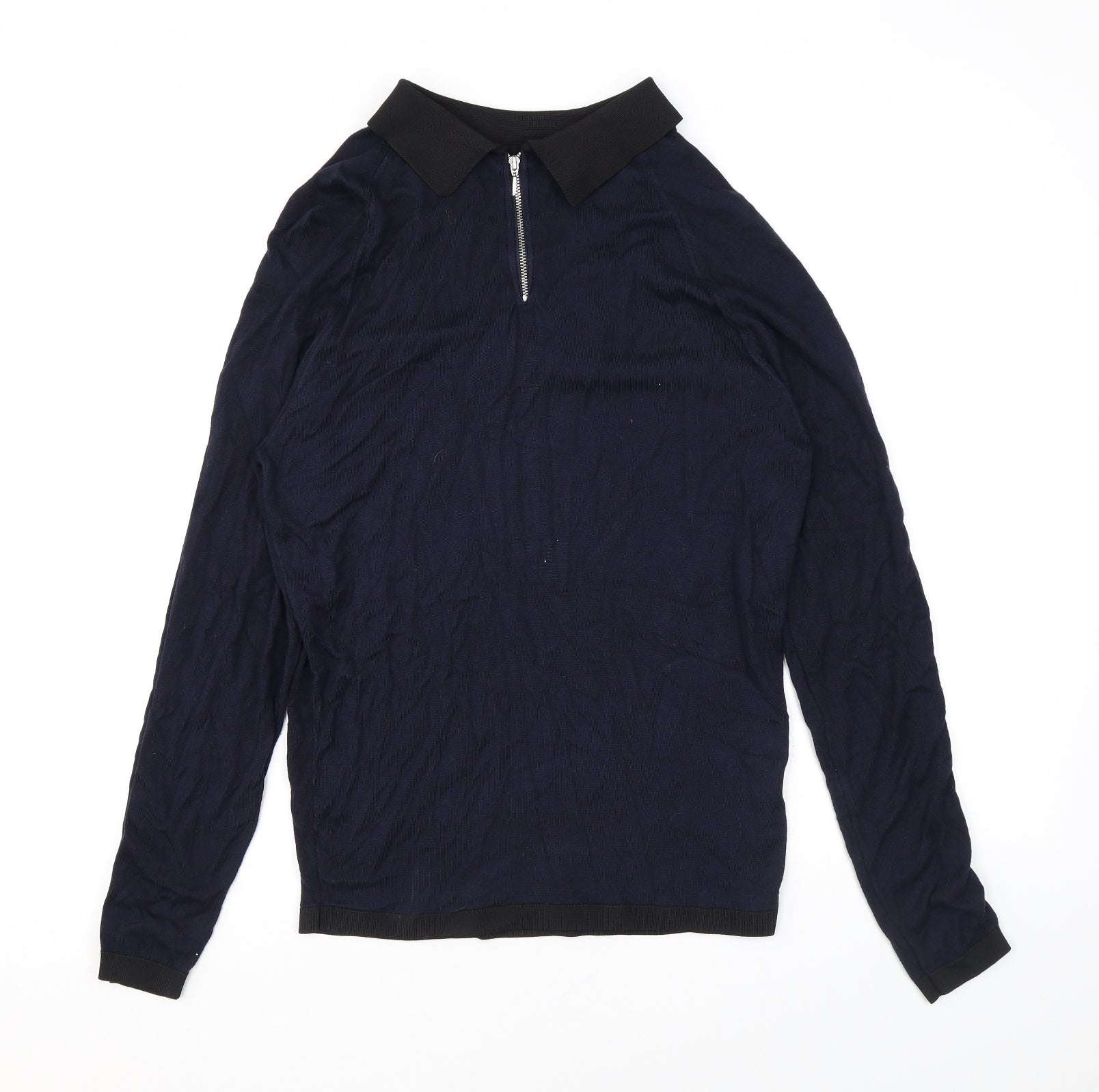 River Island Mens Blue Collared Viscose Pullover Jumper Size M Long Sleeve