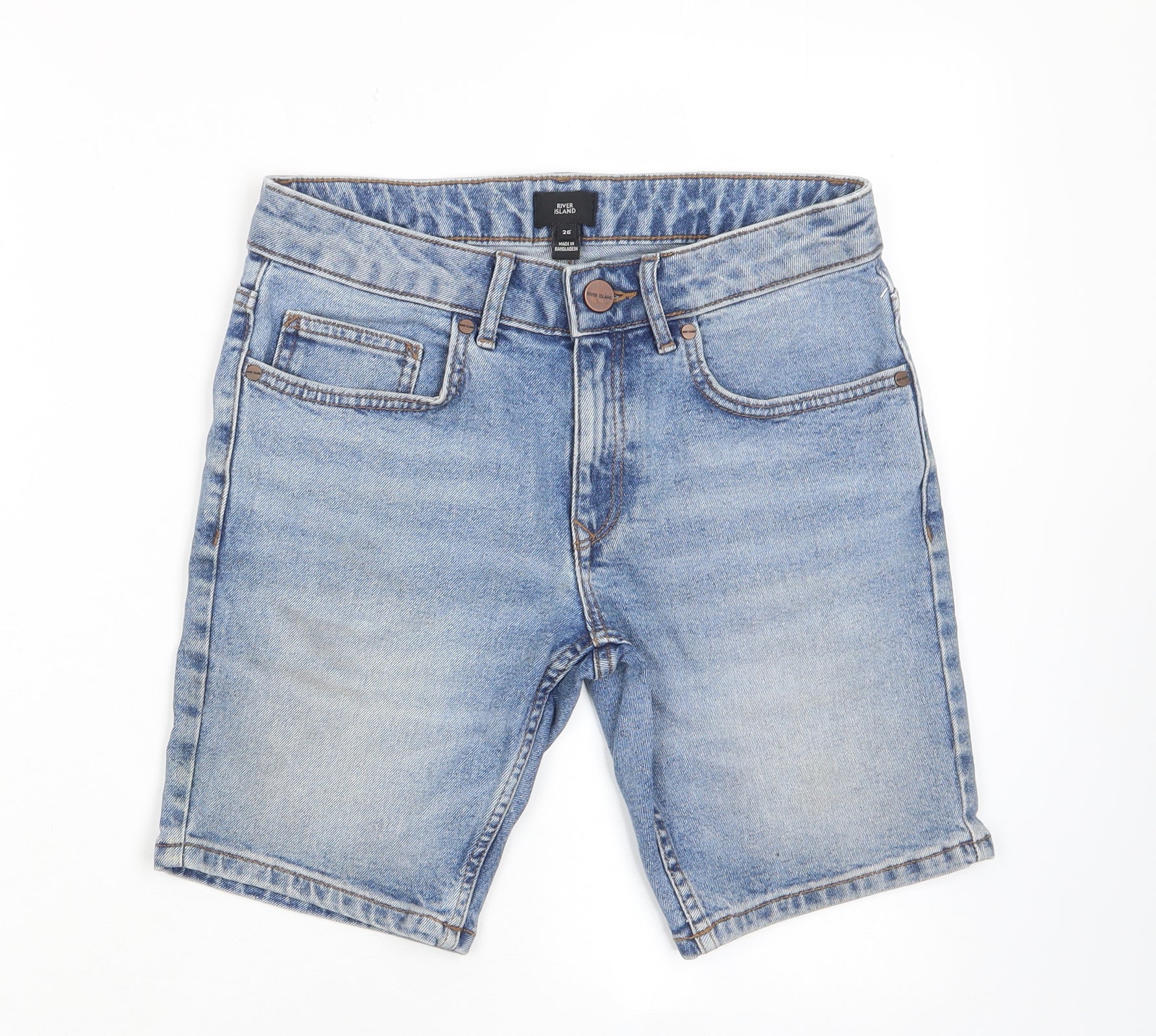 River Island Mens Blue Cotton Bermuda Shorts Size 26 in L8 in Regular Zip - Pockets, Belt Loops