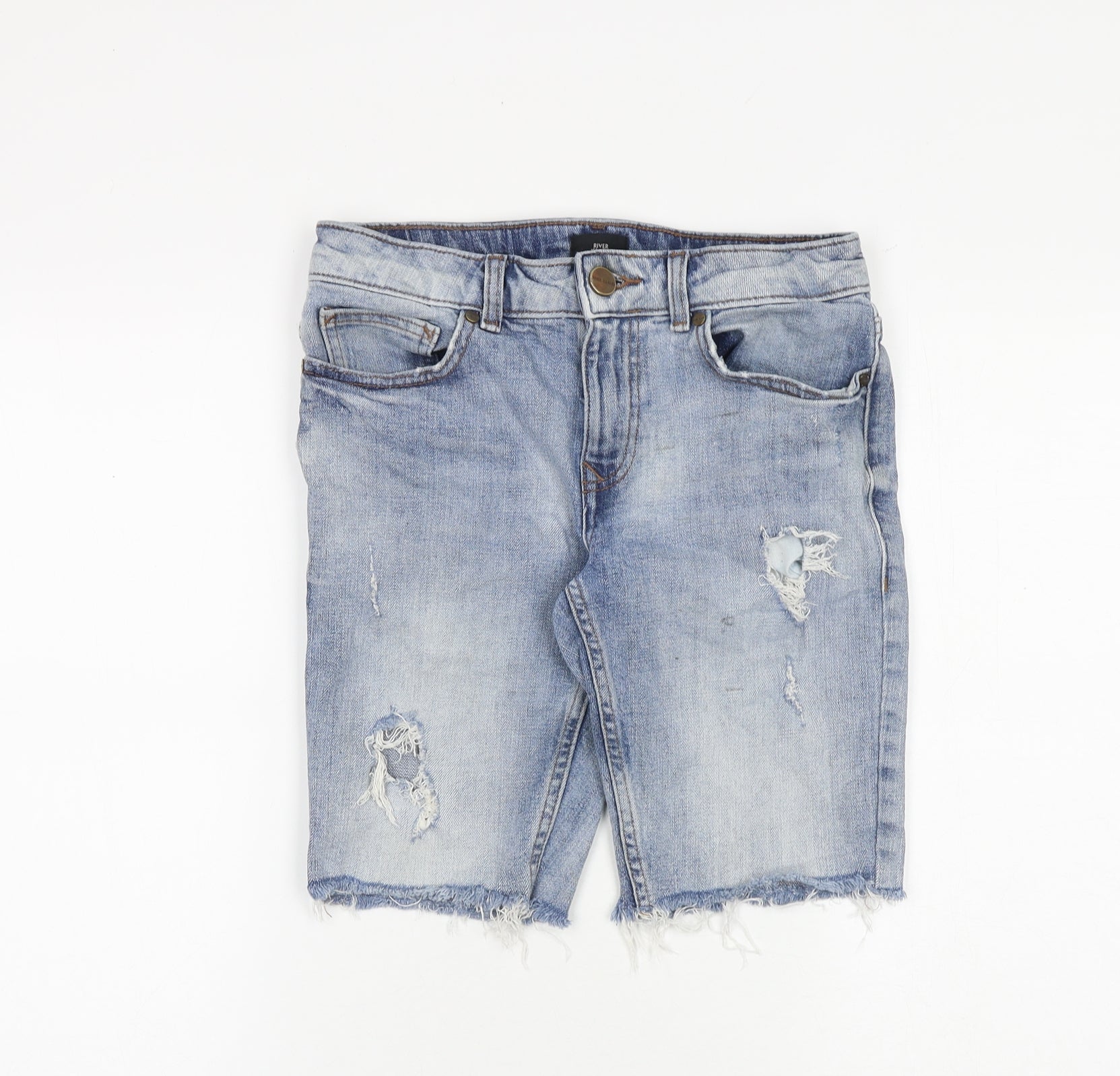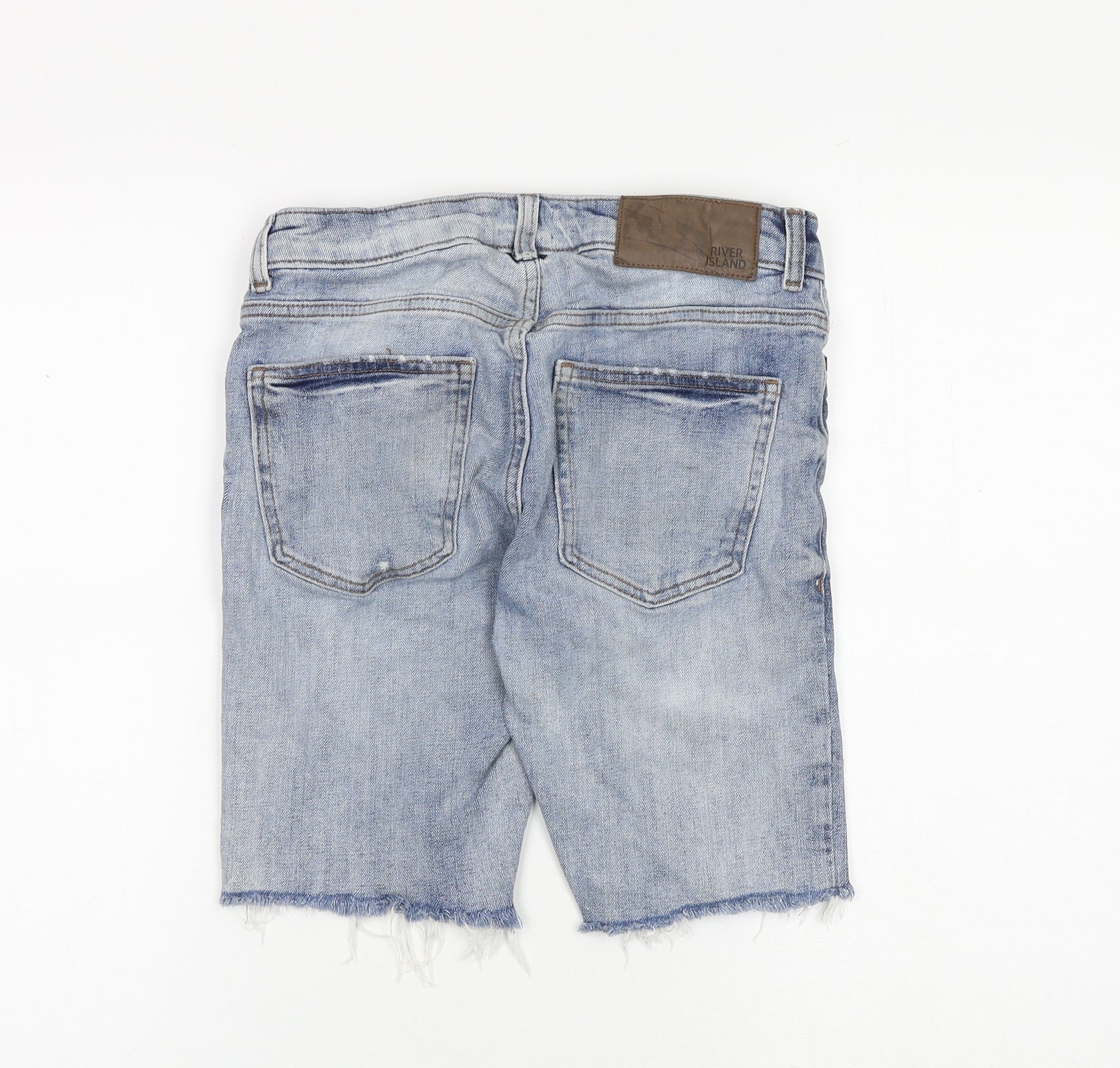 River Island Mens Blue Cotton Chino Shorts Size 26 in L9 in Regular Zip