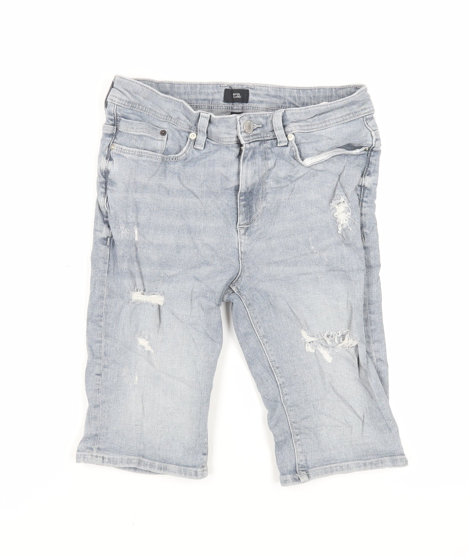River Island Mens Blue Cotton Chino Shorts Size 28 in L11 in Regular Zip