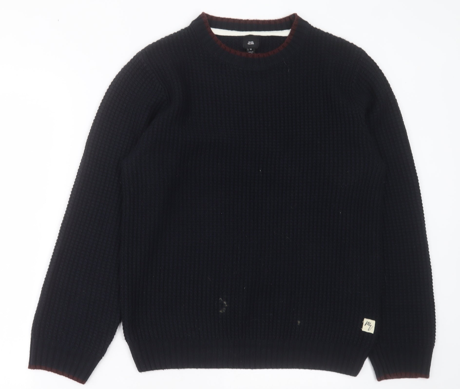 River Island Mens Blue Crew Neck Acrylic Pullover Jumper Size M