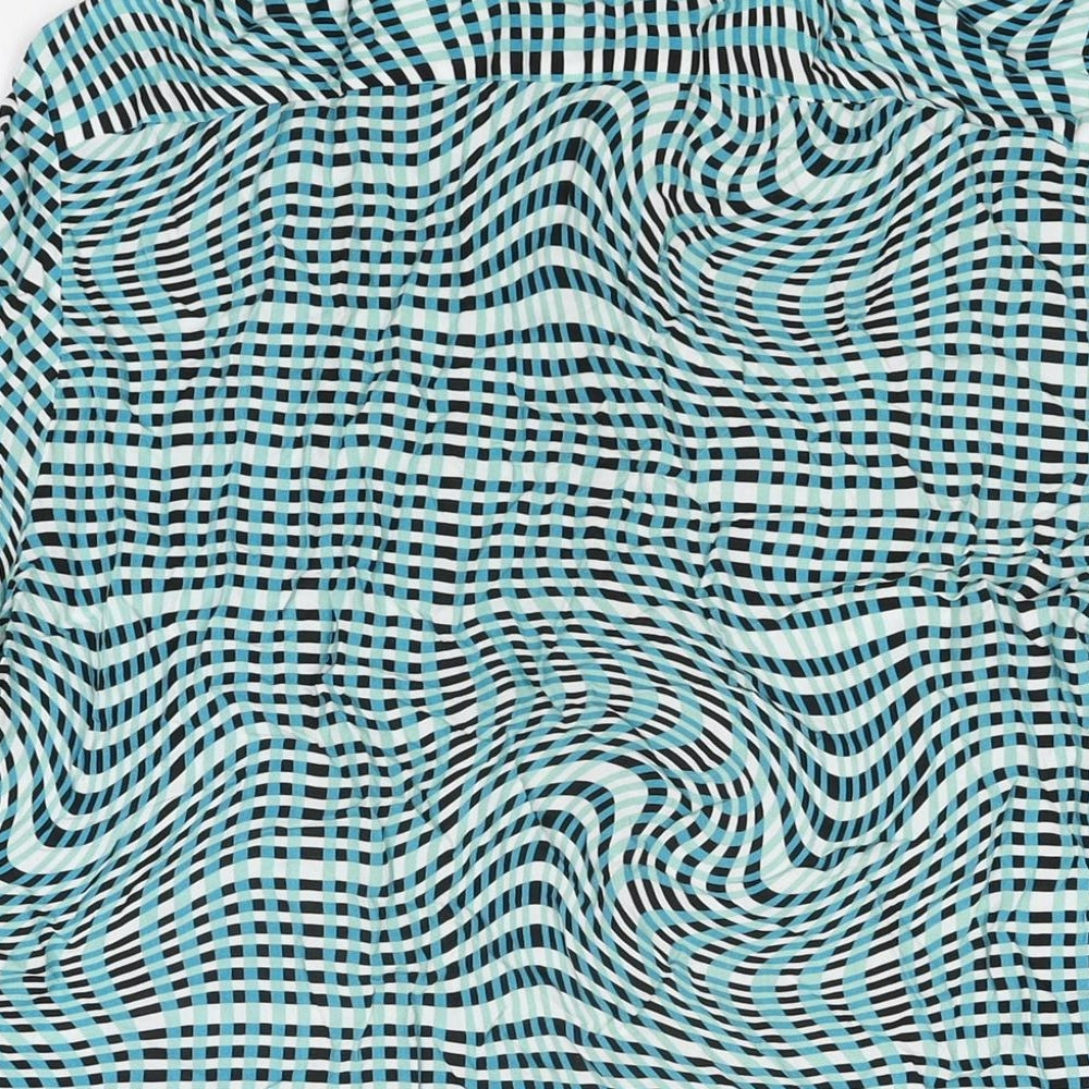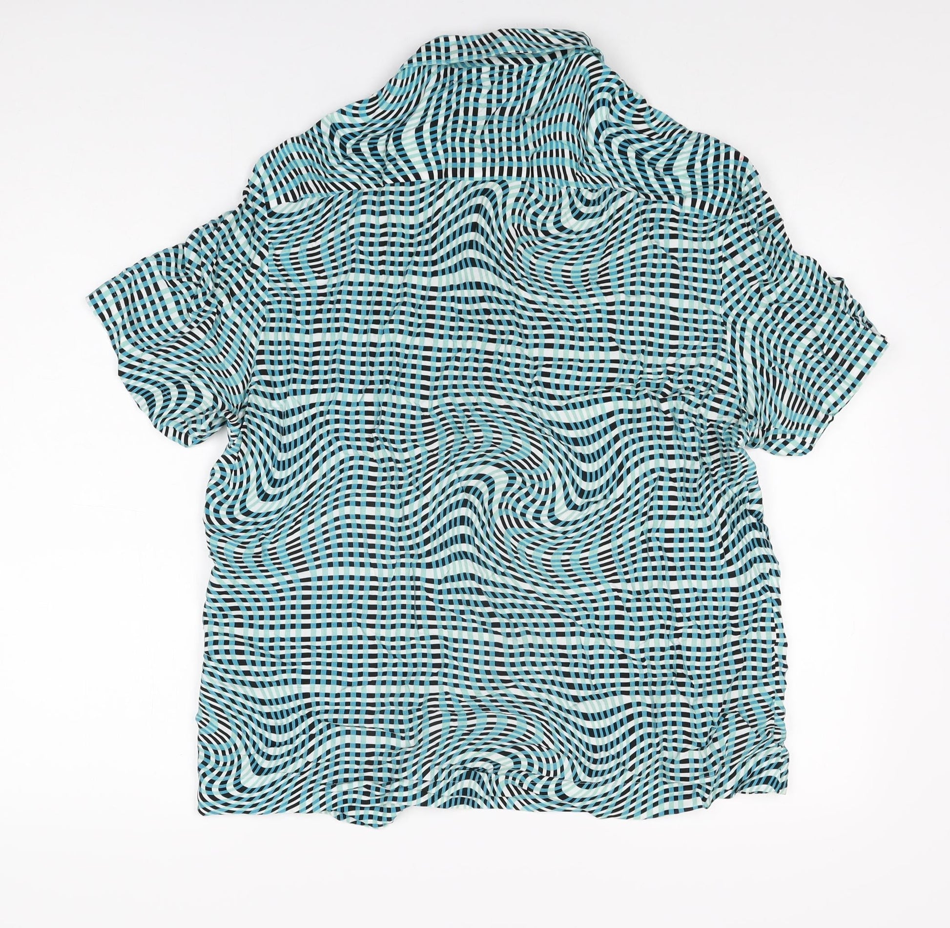 River Island Mens Blue Geometric Viscose Dress Shirt Size L Collared Button
