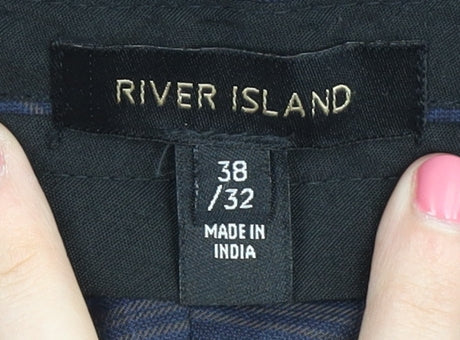 River Island Men's Blue Plaid Dress Pants Size 38