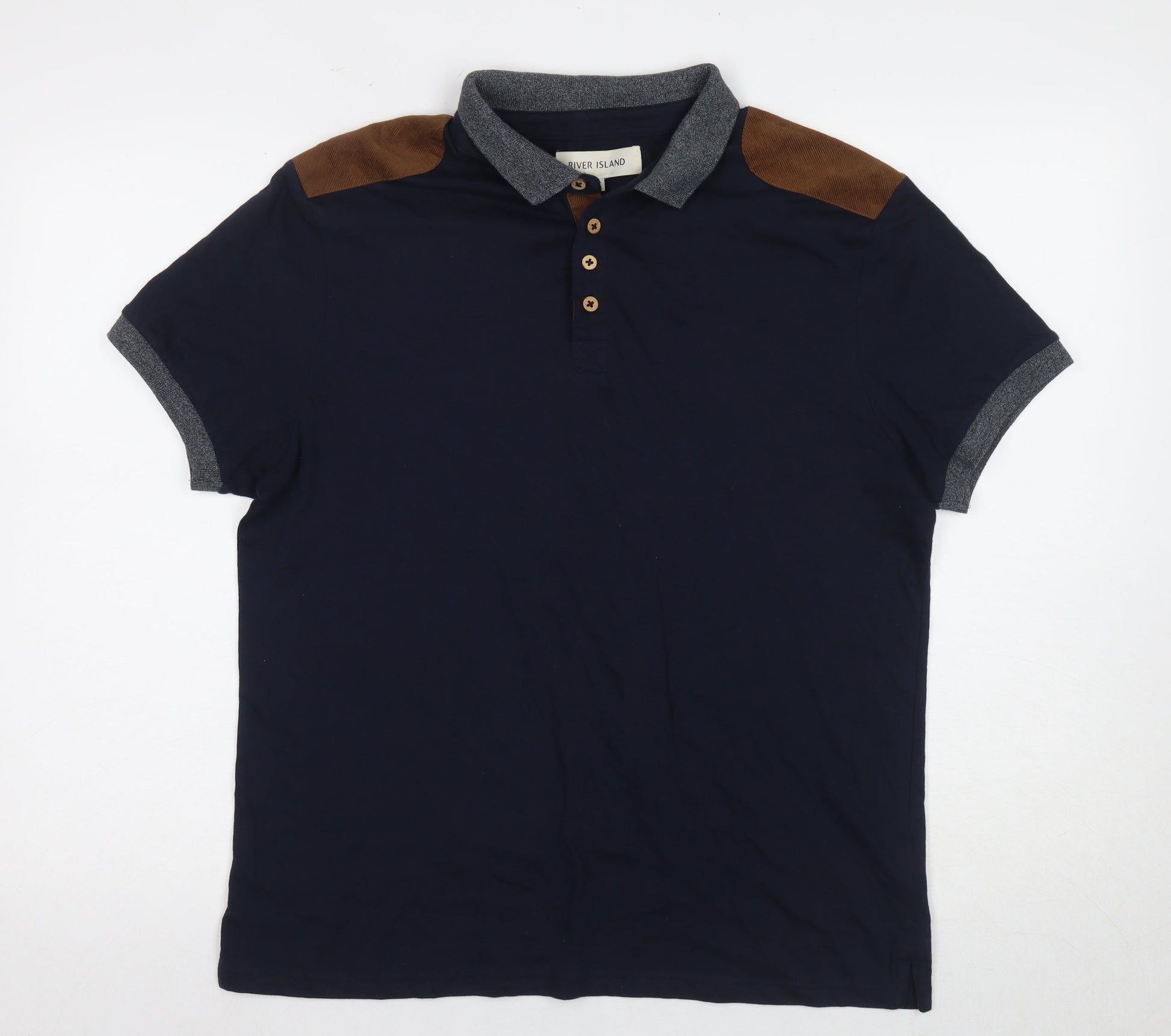 River Island Men's Blue Polo, L - Short Sleeve, Casual