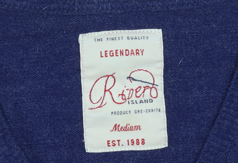 River Island Men's Blue V-Neck Acrylic Knit Jumper Size M