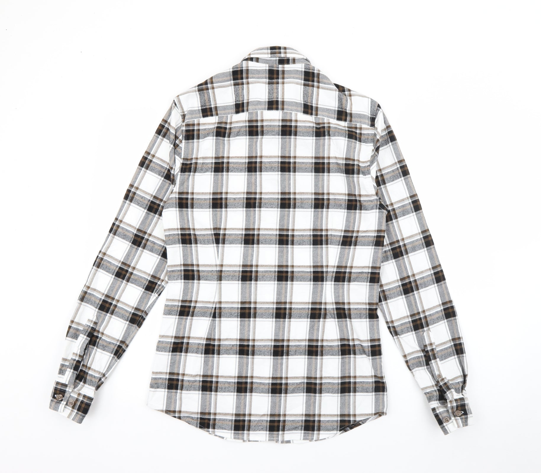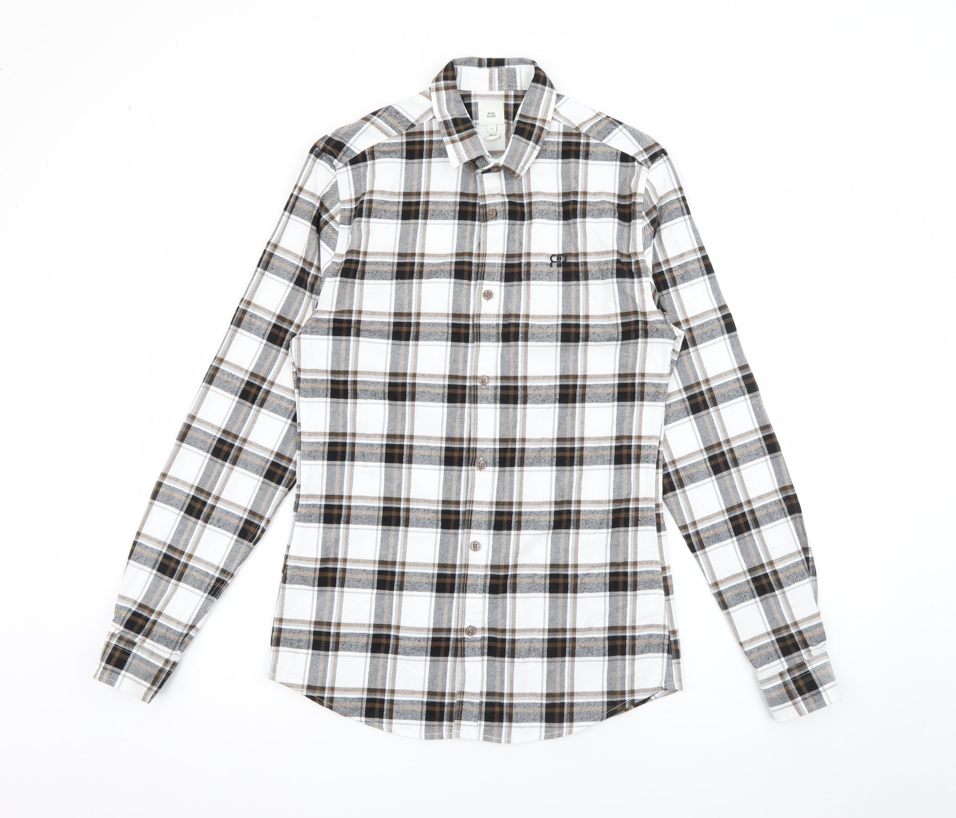 River Island Mens Brown Plaid Cotton Button-Up Size S Collared Button