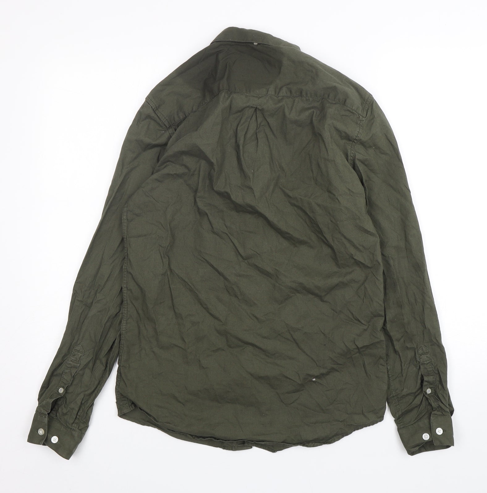 River Island Mens Green Cotton Button-Up Size S Collared Button