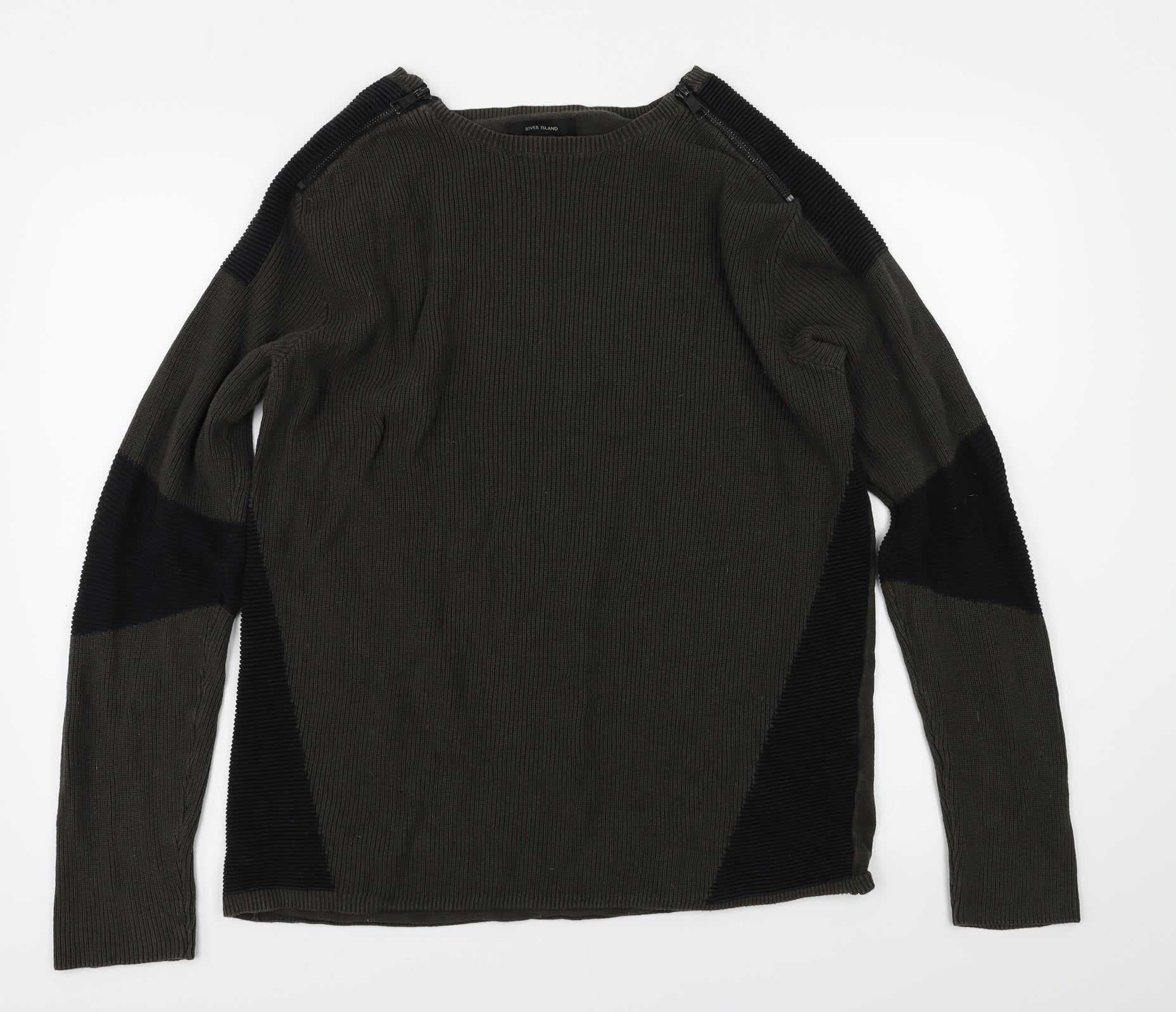 River Island Mens Green Polka Dot Pullover Jumper Size M