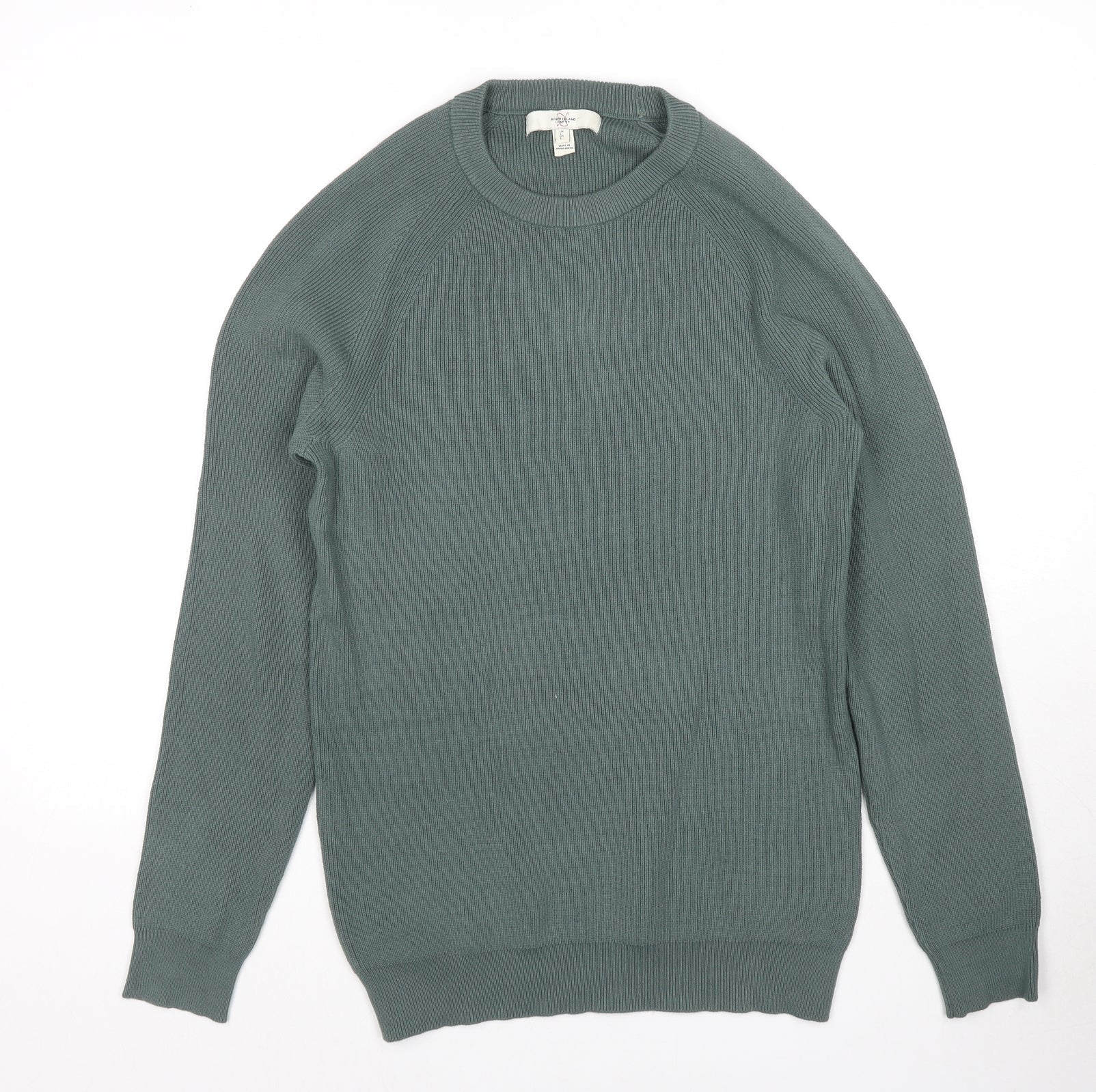 River Island Mens Green Round Neck Cotton Pullover Jumper Size L Long Sleeve