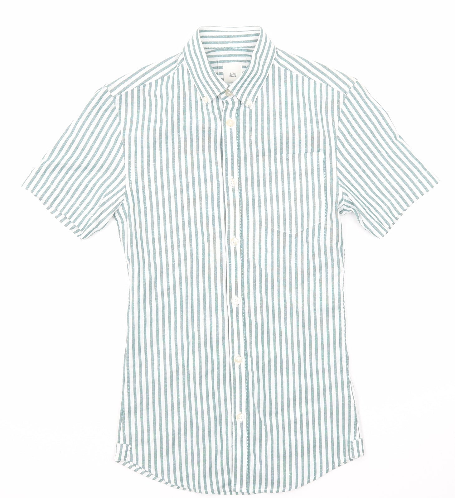 River Island Mens Green Striped Cotton Button-Up Size XS Collared Button