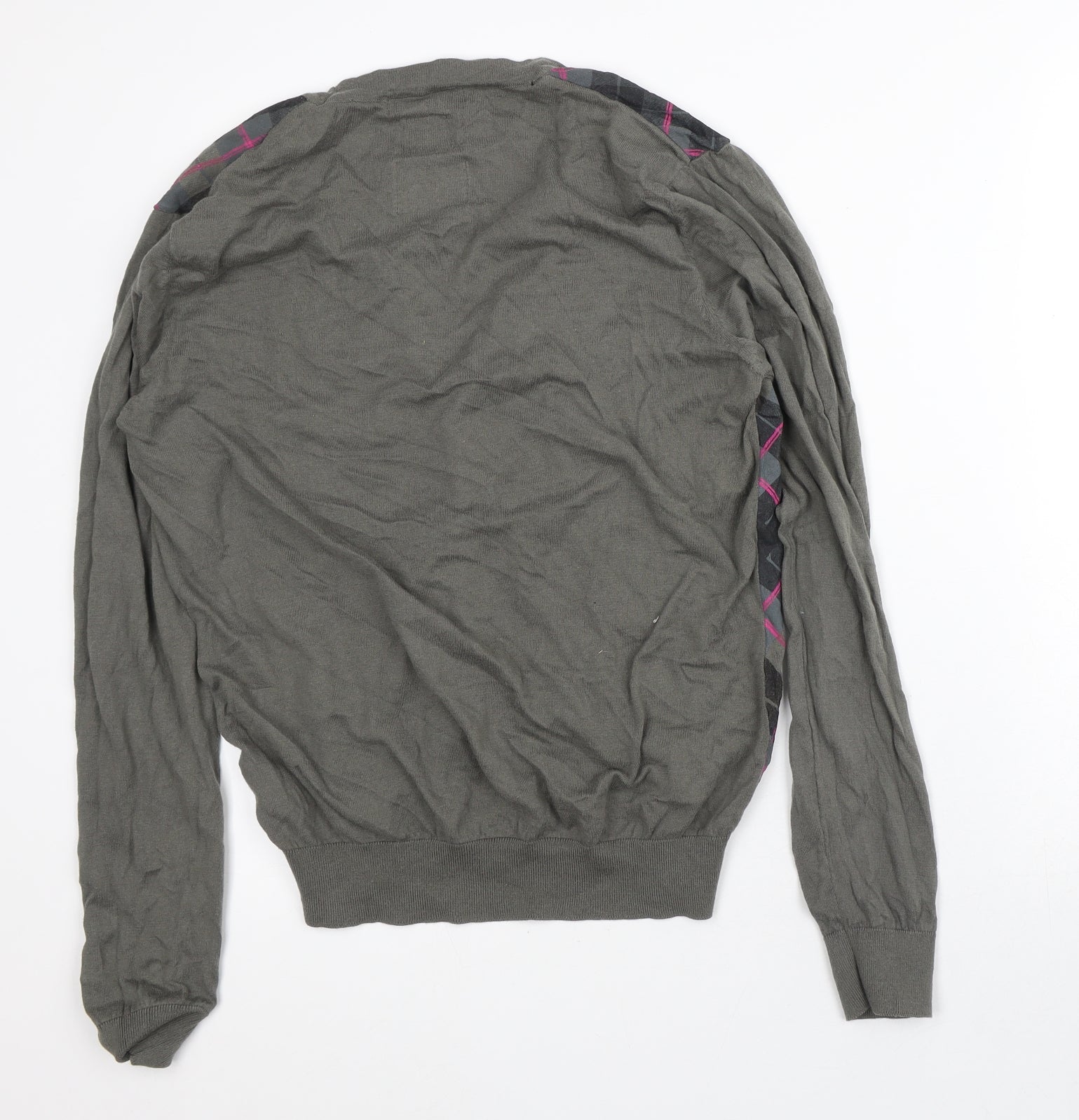 River Island Mens Green V-Neck Geometric Cotton Cardigan Jumper Size L