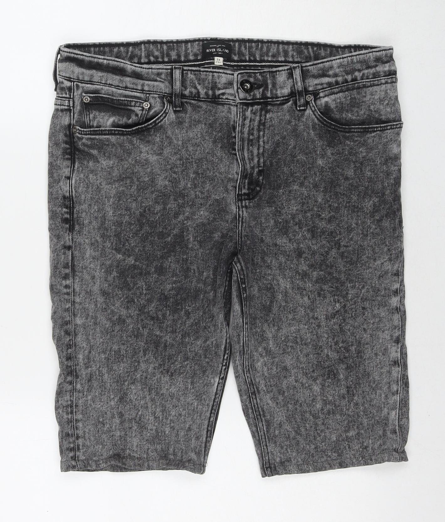 River Island Mens Grey Cotton Bermuda Shorts Size 34 in L10 in Regular Zip