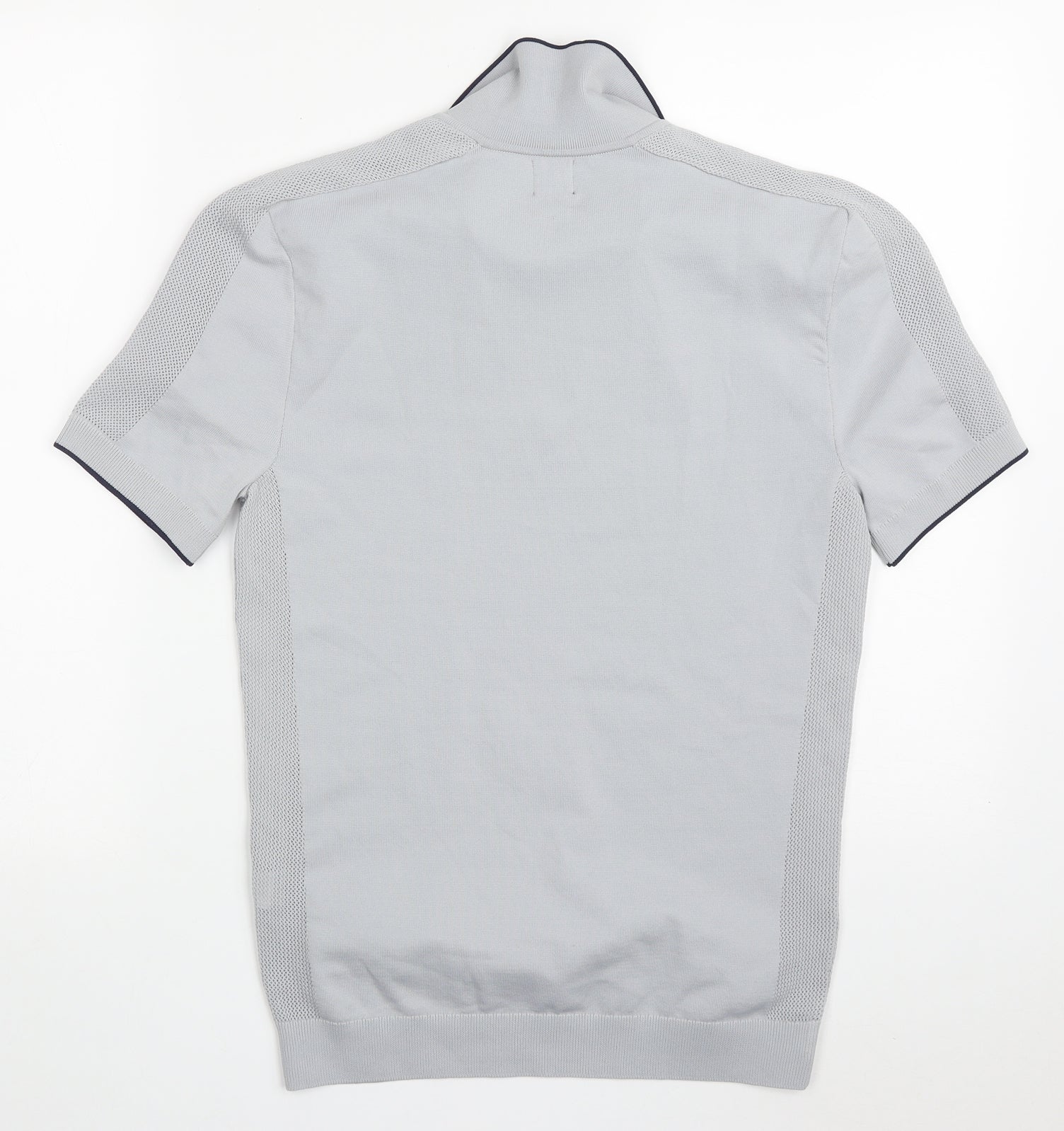 River Island Mens Grey Polyester Polo Size M Collared Pullover
