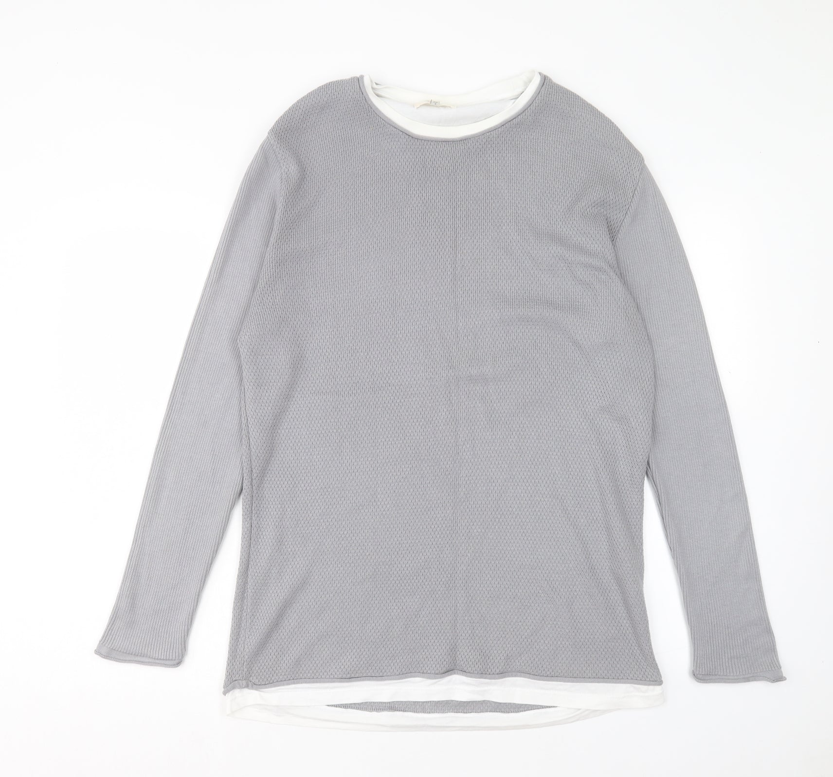 River Island Mens Grey Round Neck Acrylic Pullover Jumper Size L