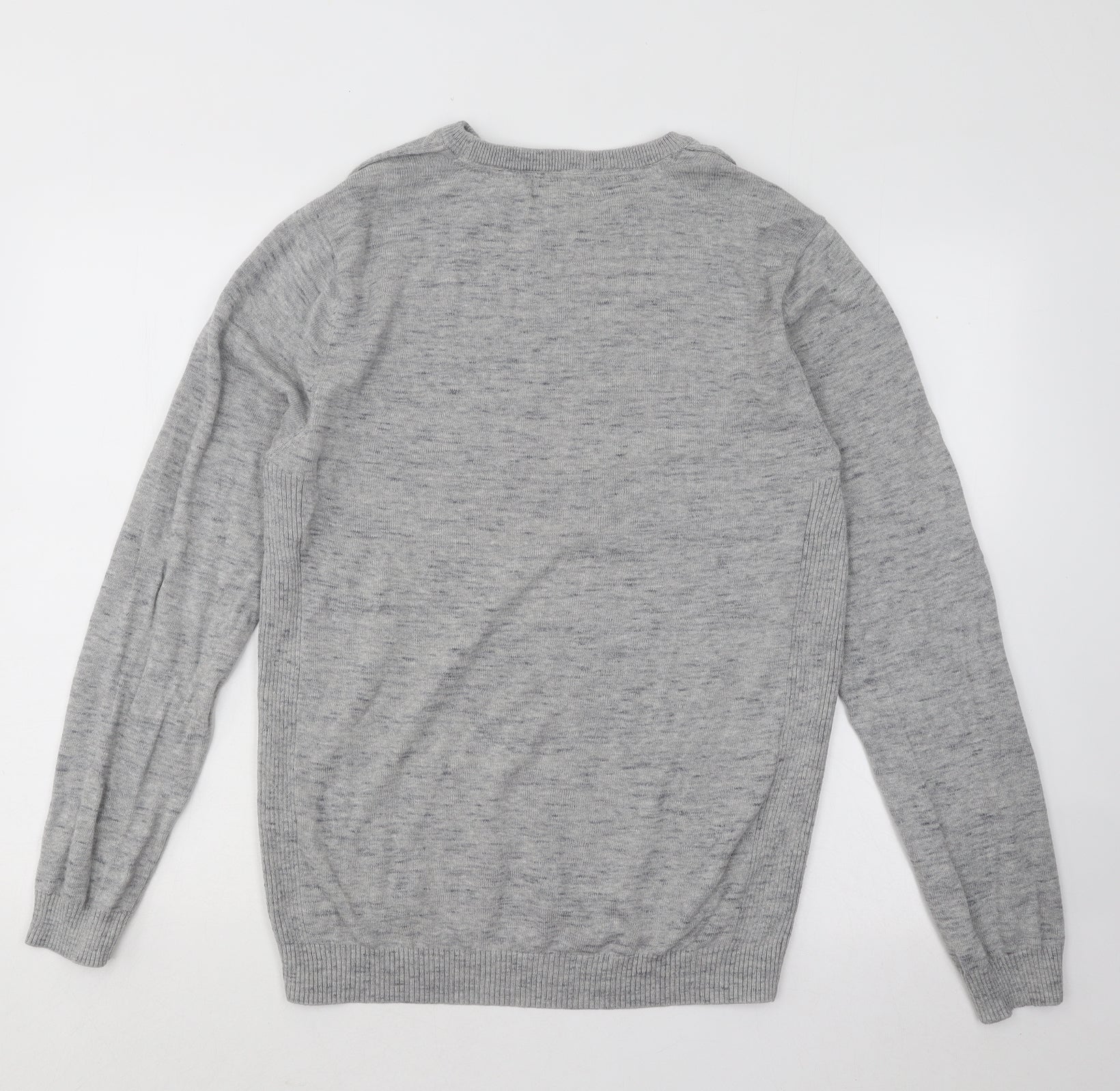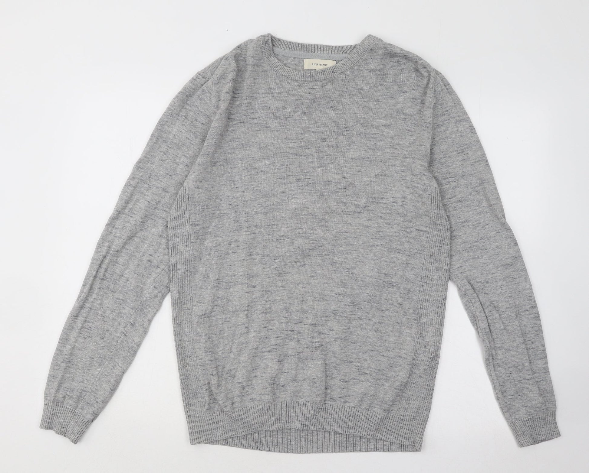 River Island Mens Grey Round Neck Cotton Pullover Jumper Size M