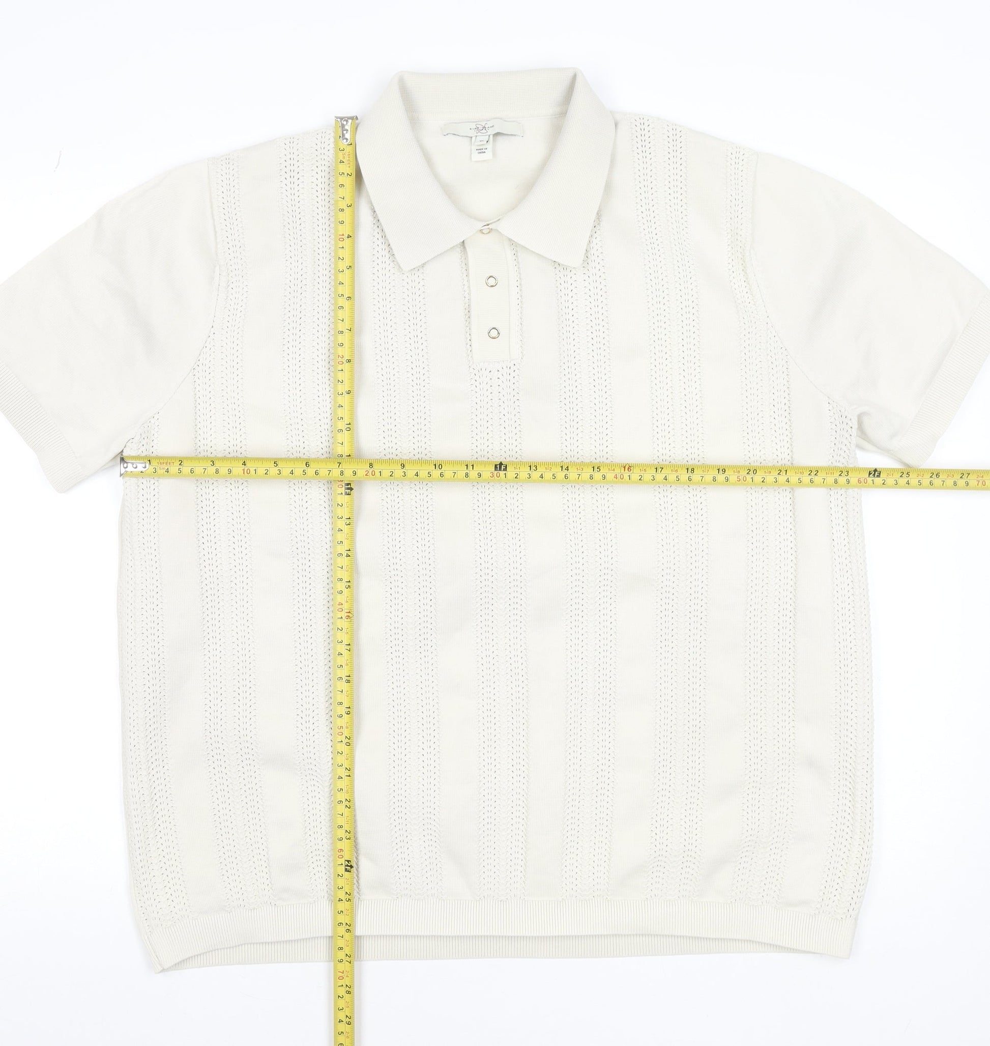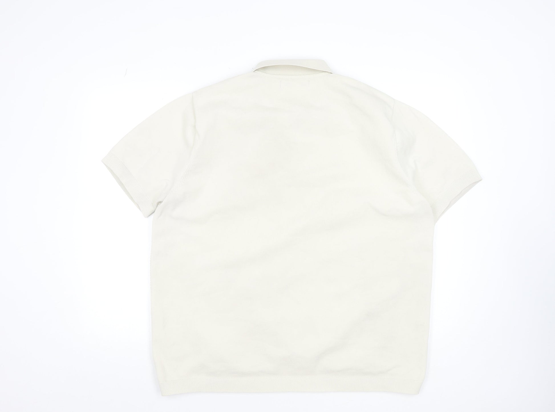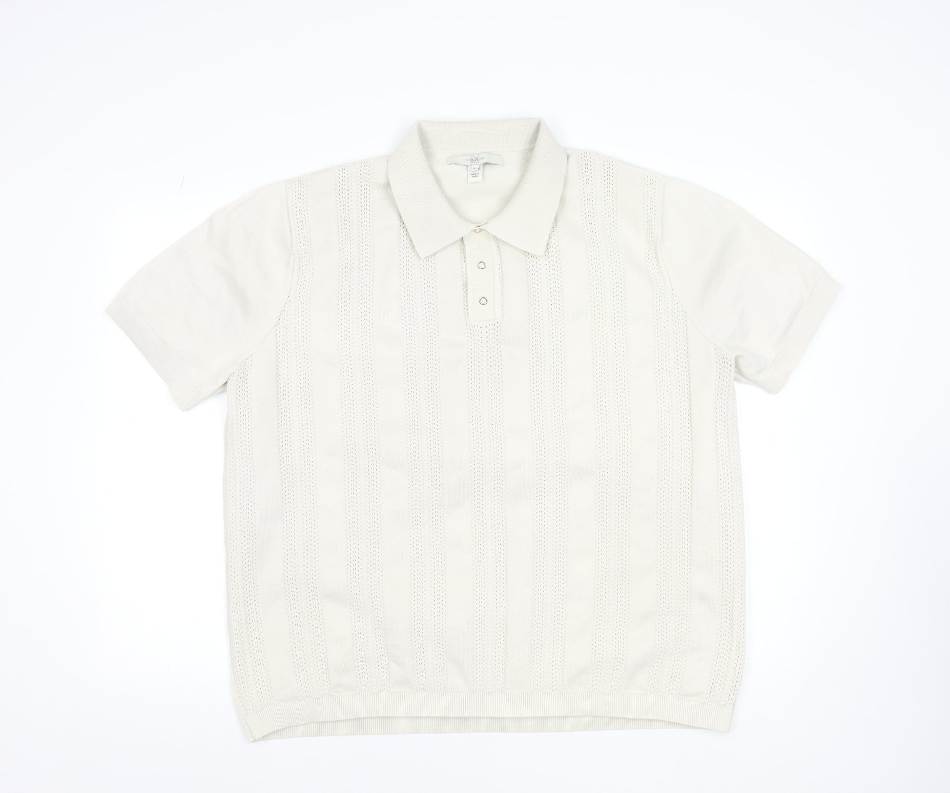 River Island Men's Ivory Cotton Knit Polo Shirt XL Classic Style