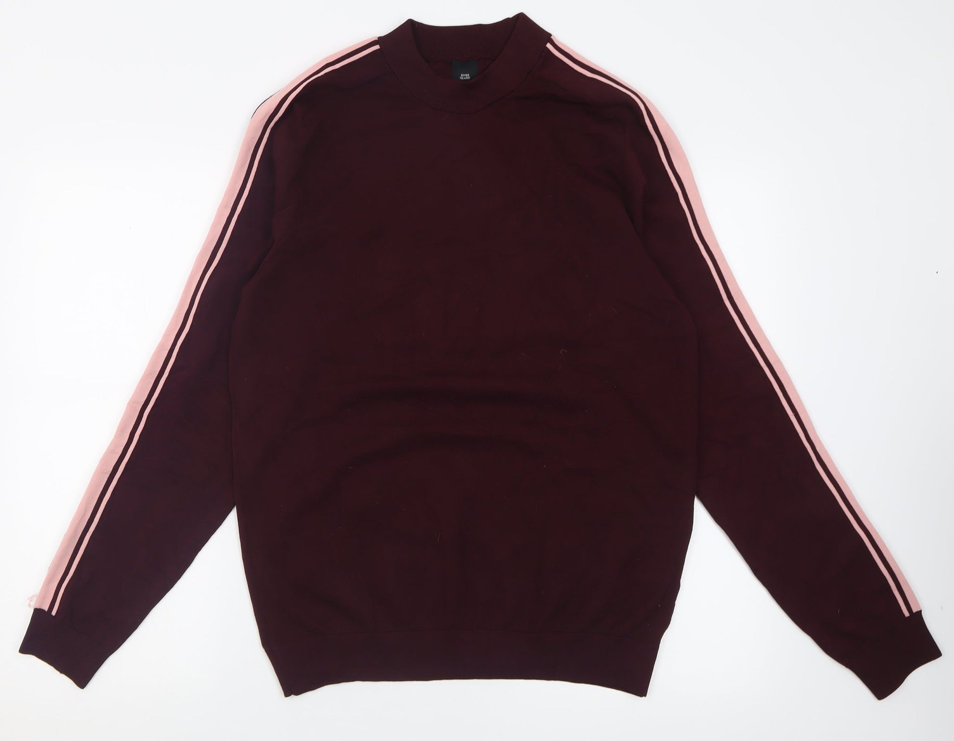 River Island Mens Purple Crew Neck Striped Polyester Pullover Jumper Size S