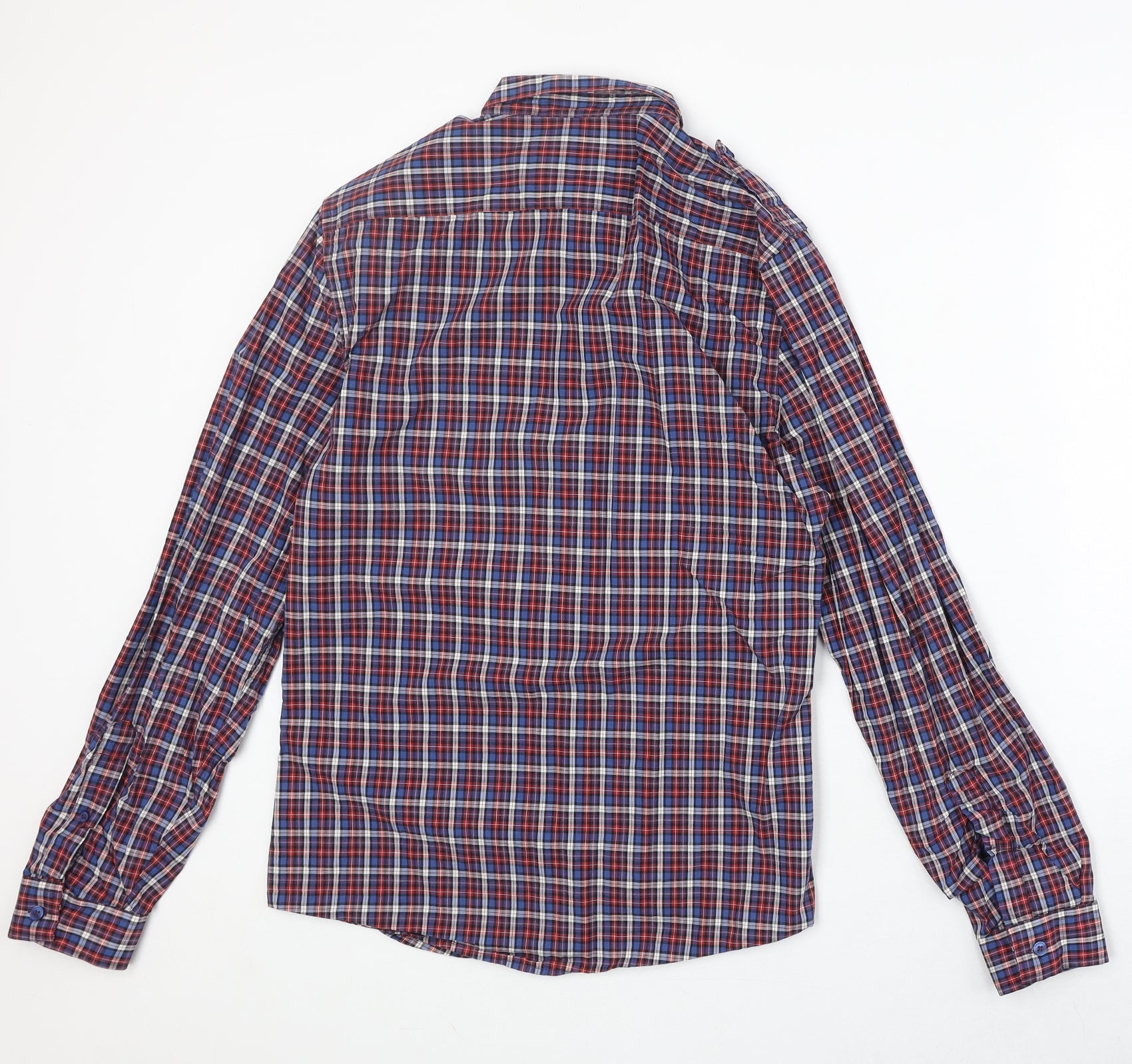 River Island Mens Red Plaid Cotton Button-Up Size M Collared Button