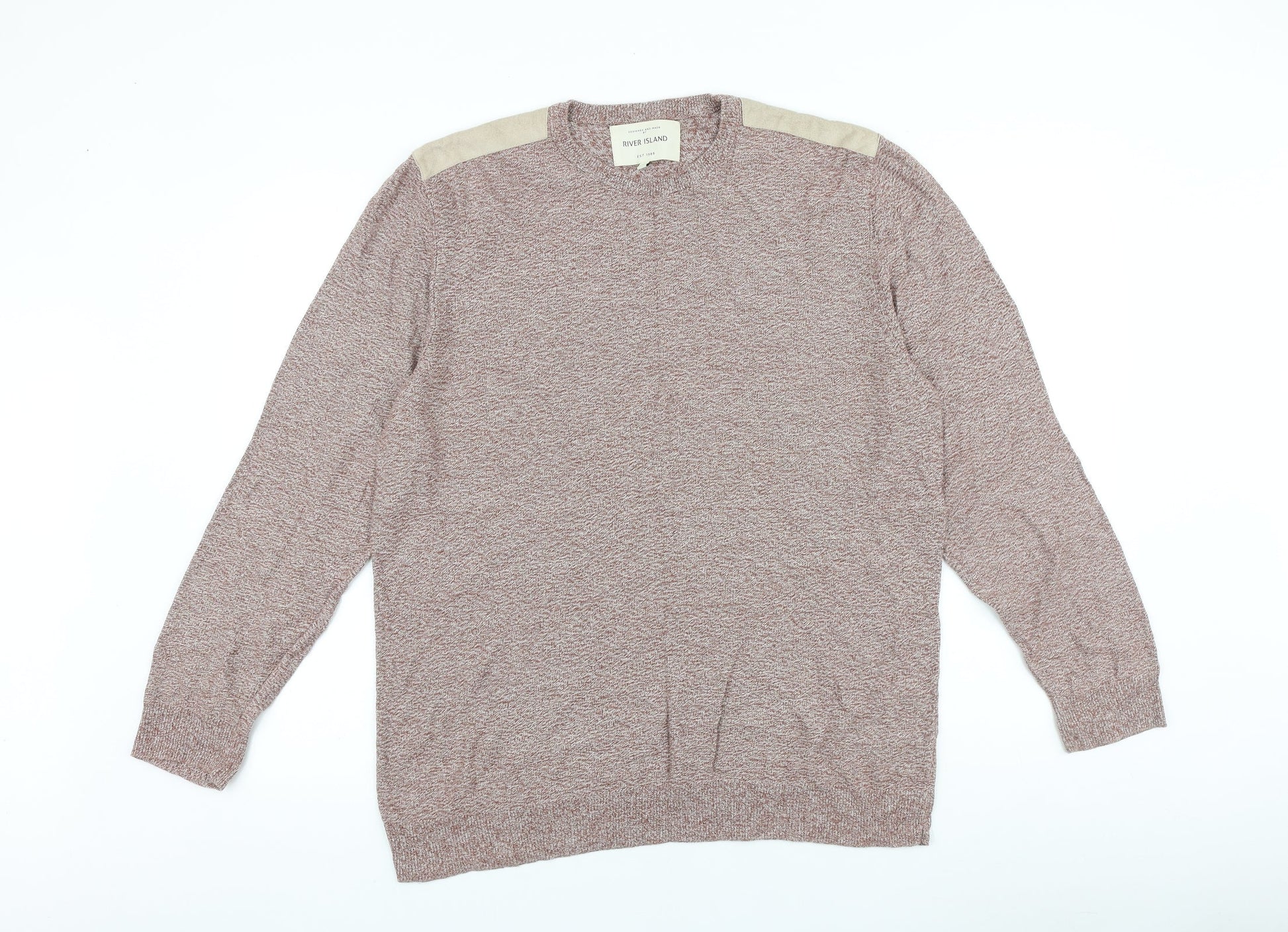 River Island Mens Red Round Neck Cotton Pullover Jumper Size L Long Sleeve