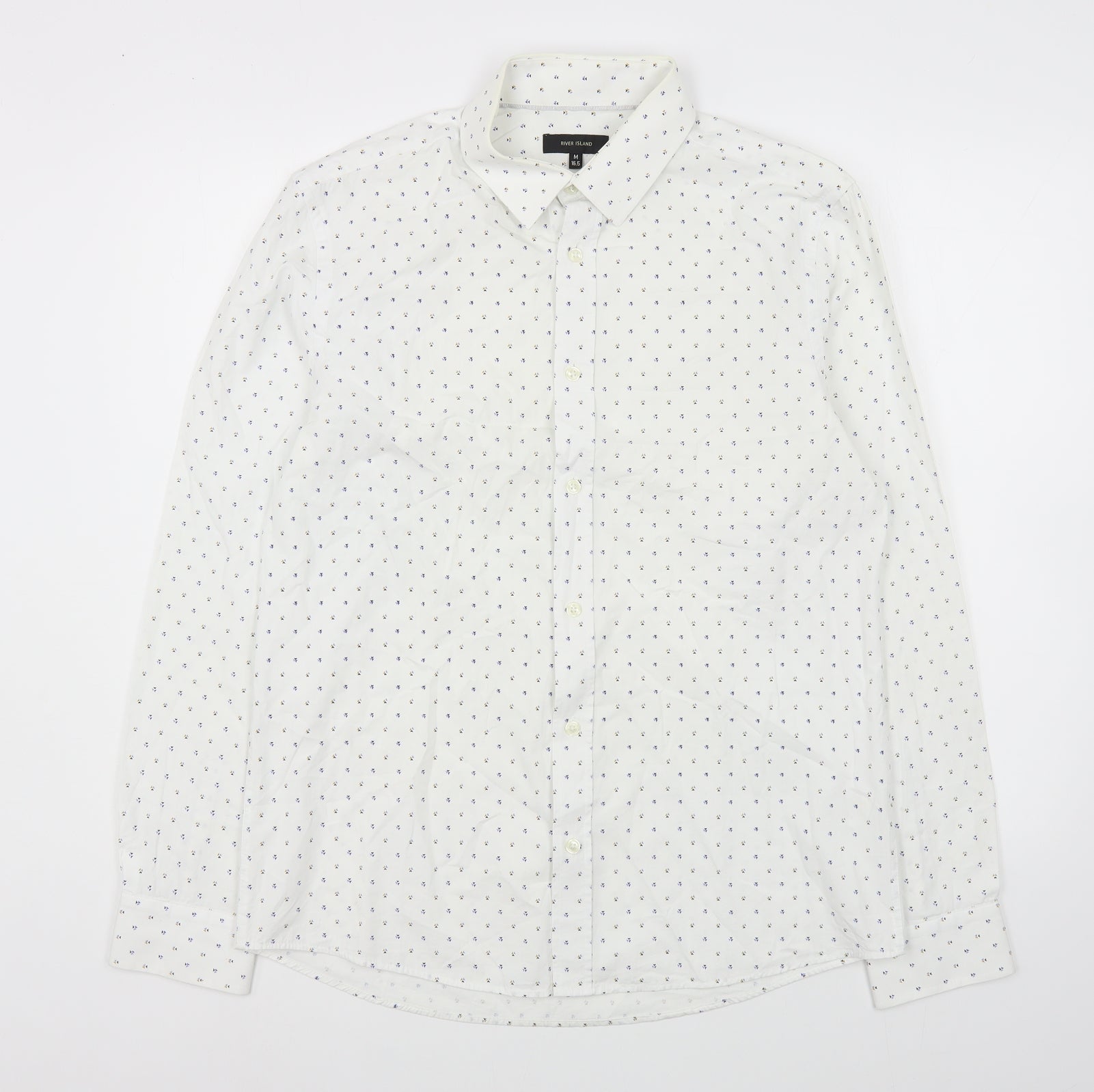 River Island Mens White Geometric Cotton Button-Up Size M Collared Button