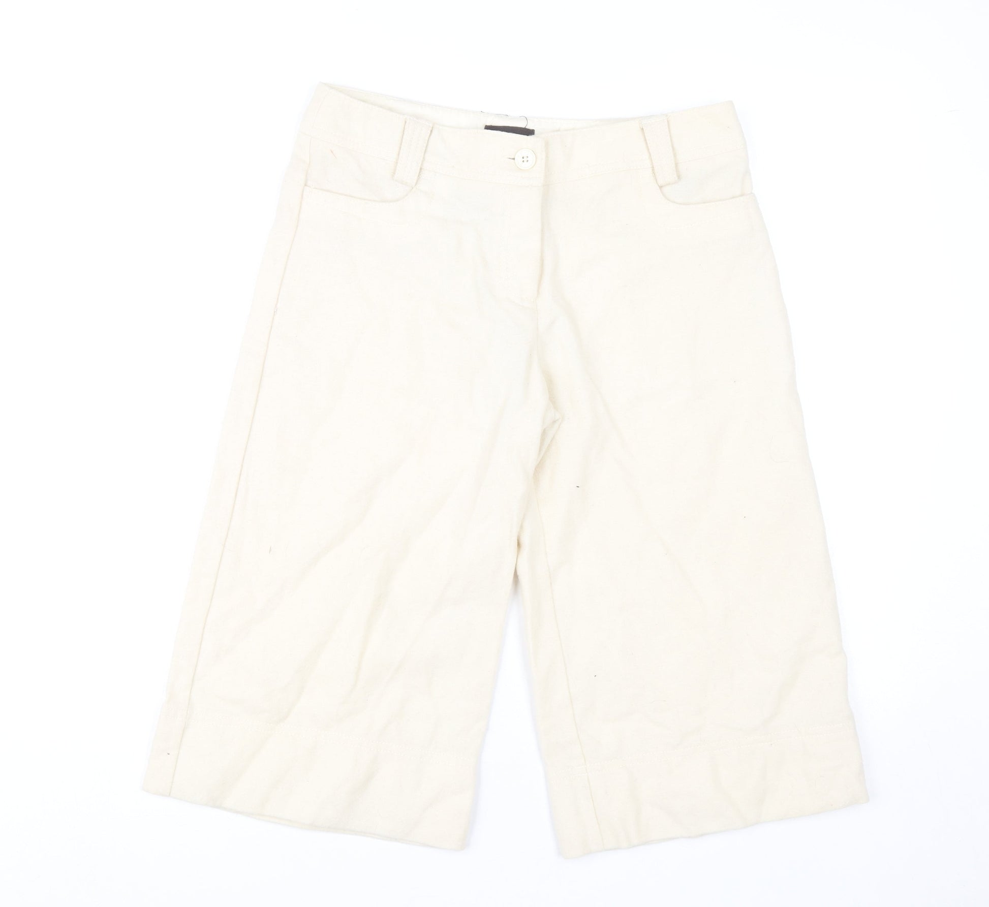 River Island Women’s Beige Wool Blend Cropped Wide-Leg Trousers Size 8