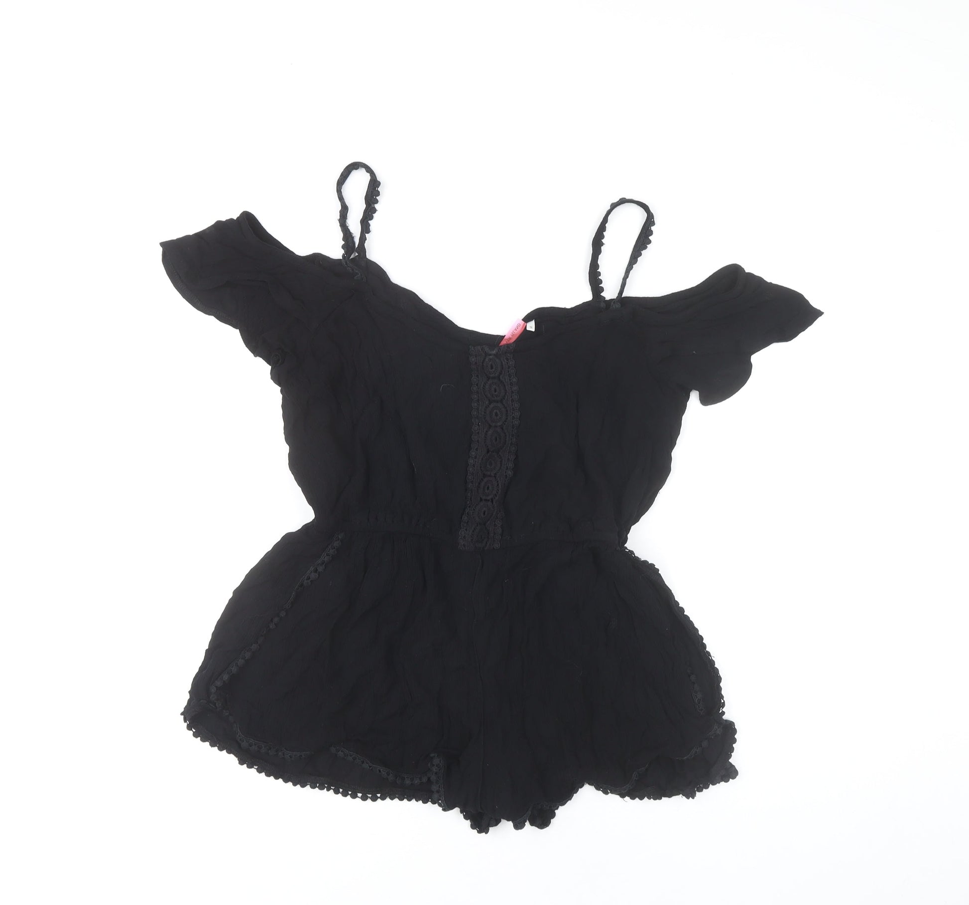 River Island Women’s Black Lace Trim Viscose Off Shoulder Playsuit UK 12