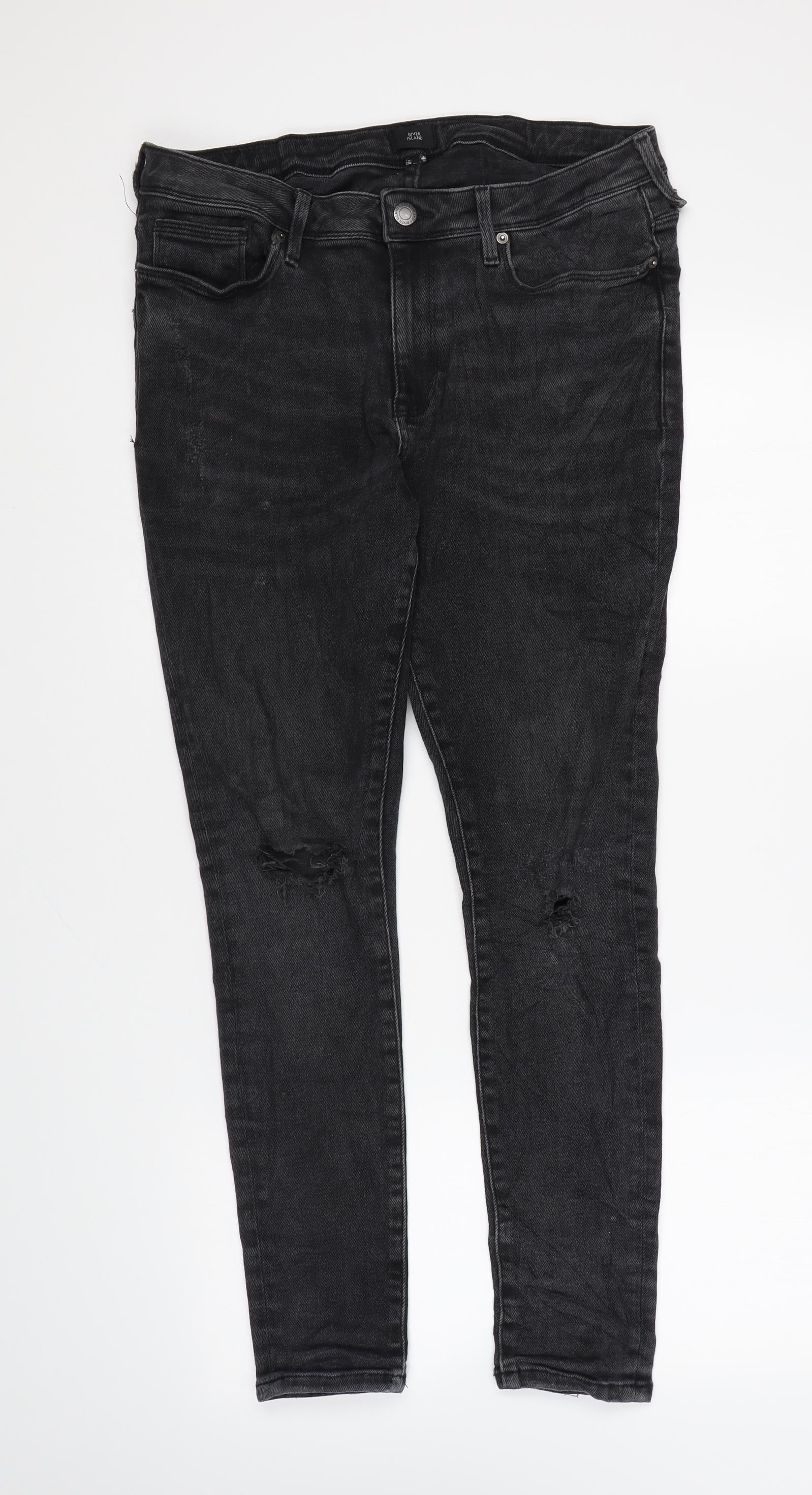 River Island Womens Black Cotton Skinny Jeans Size 30 in L26 in Regular Zip