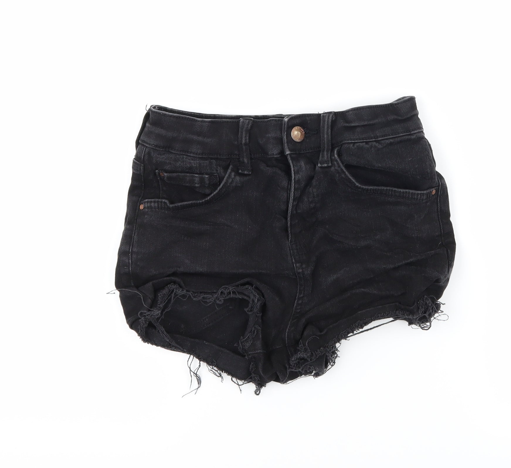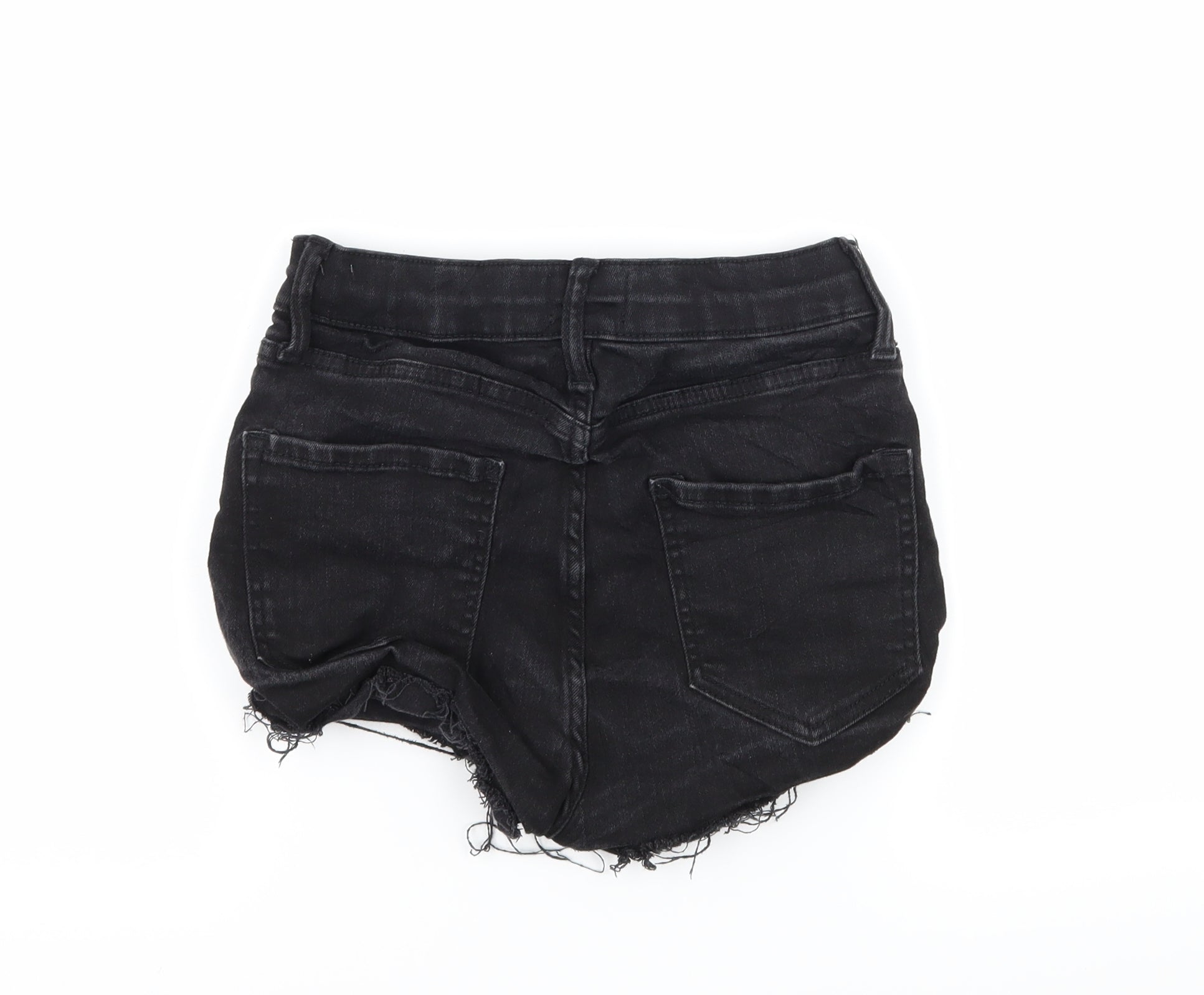 River Island Womens Black Denim Hot Pants Shorts Size 6 - Distressed