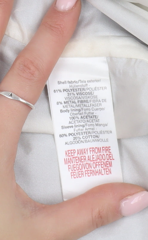 - Material Breakdown: 61% Polyester 31% Viscose 8% Metallic Fibre