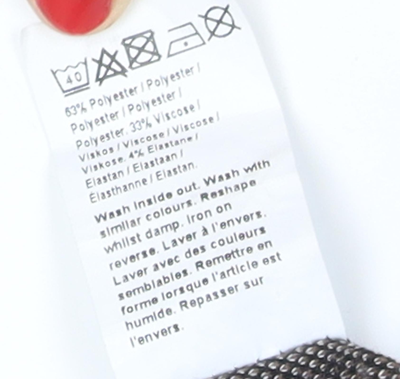 - Material Breakdown: 63% Polyester 33% Viscose 4% Elastane