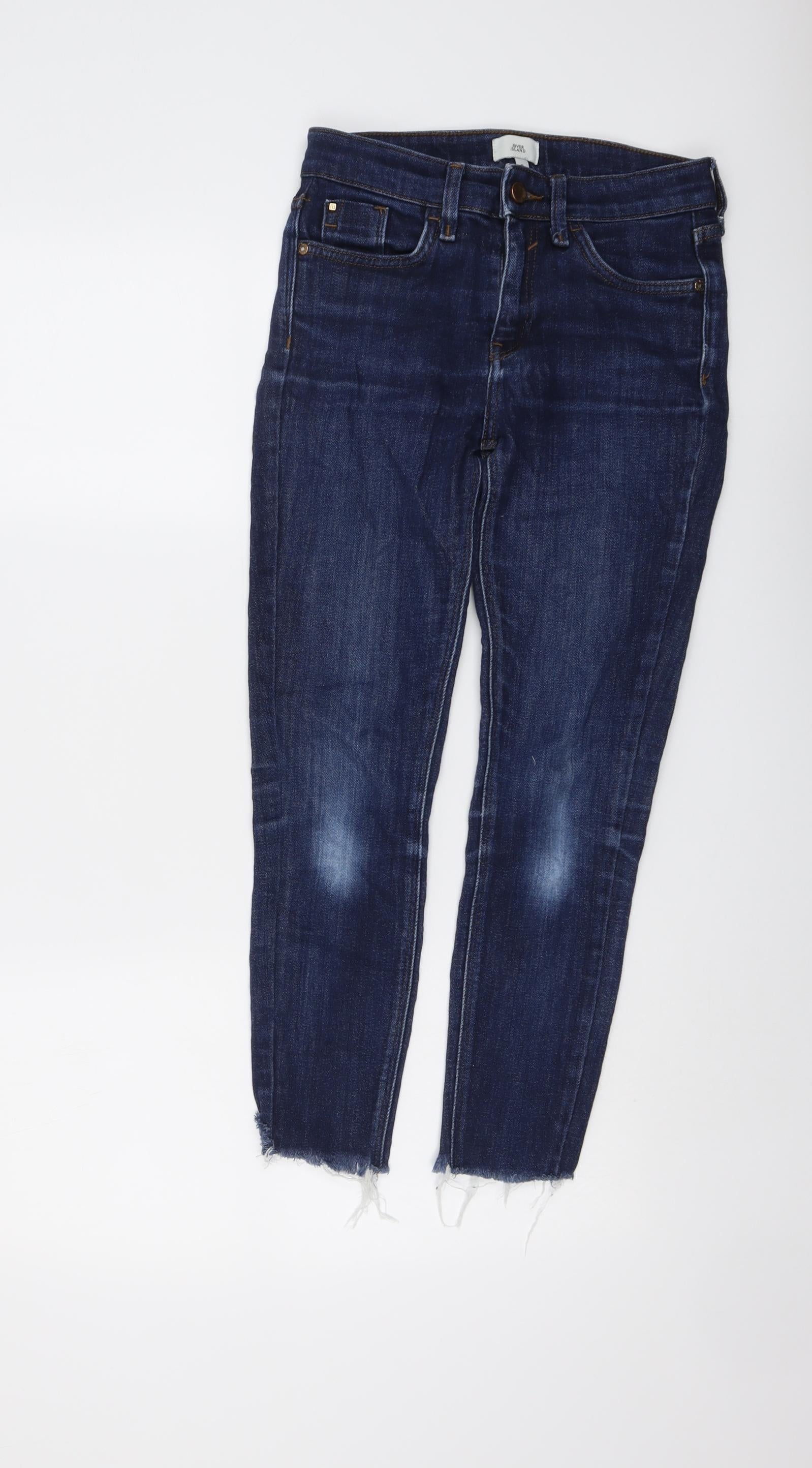 River Island Womens Blue Cotton Skinny Jeans Size 6 L24 in Regular Button