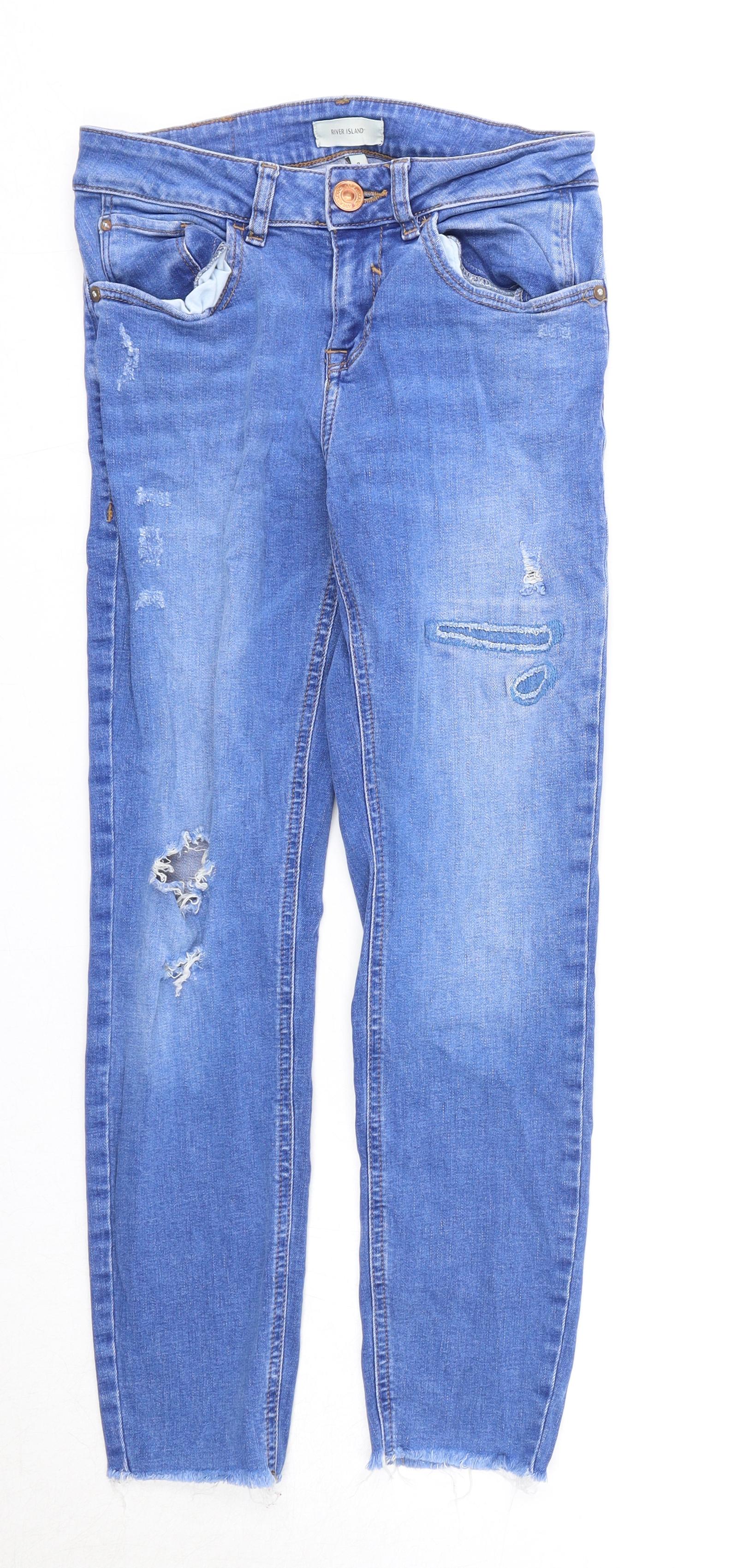 River Island Womens Blue Cotton Straight Jeans Size 8 Regular Zip
