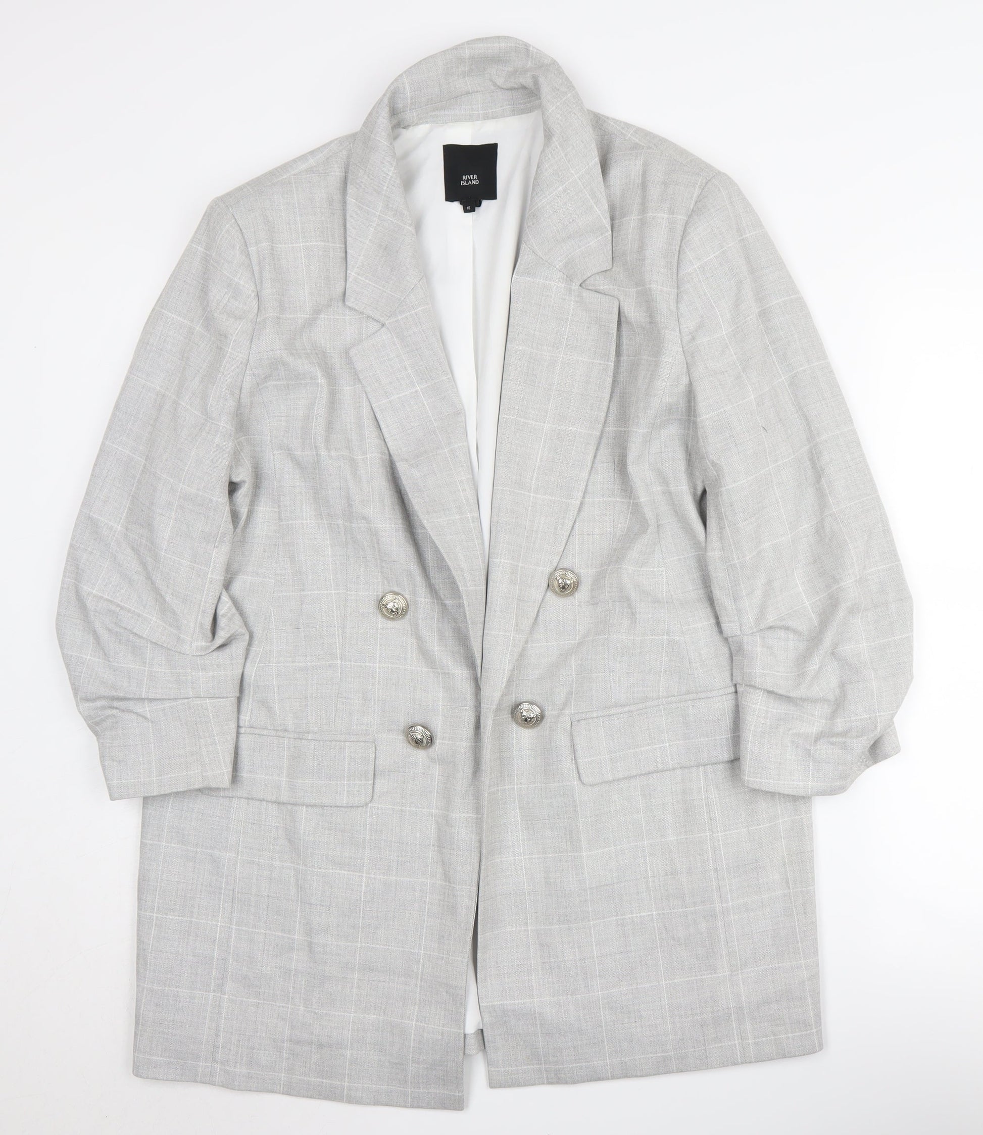 River Island Women's Grey Check Blazer, Size 16