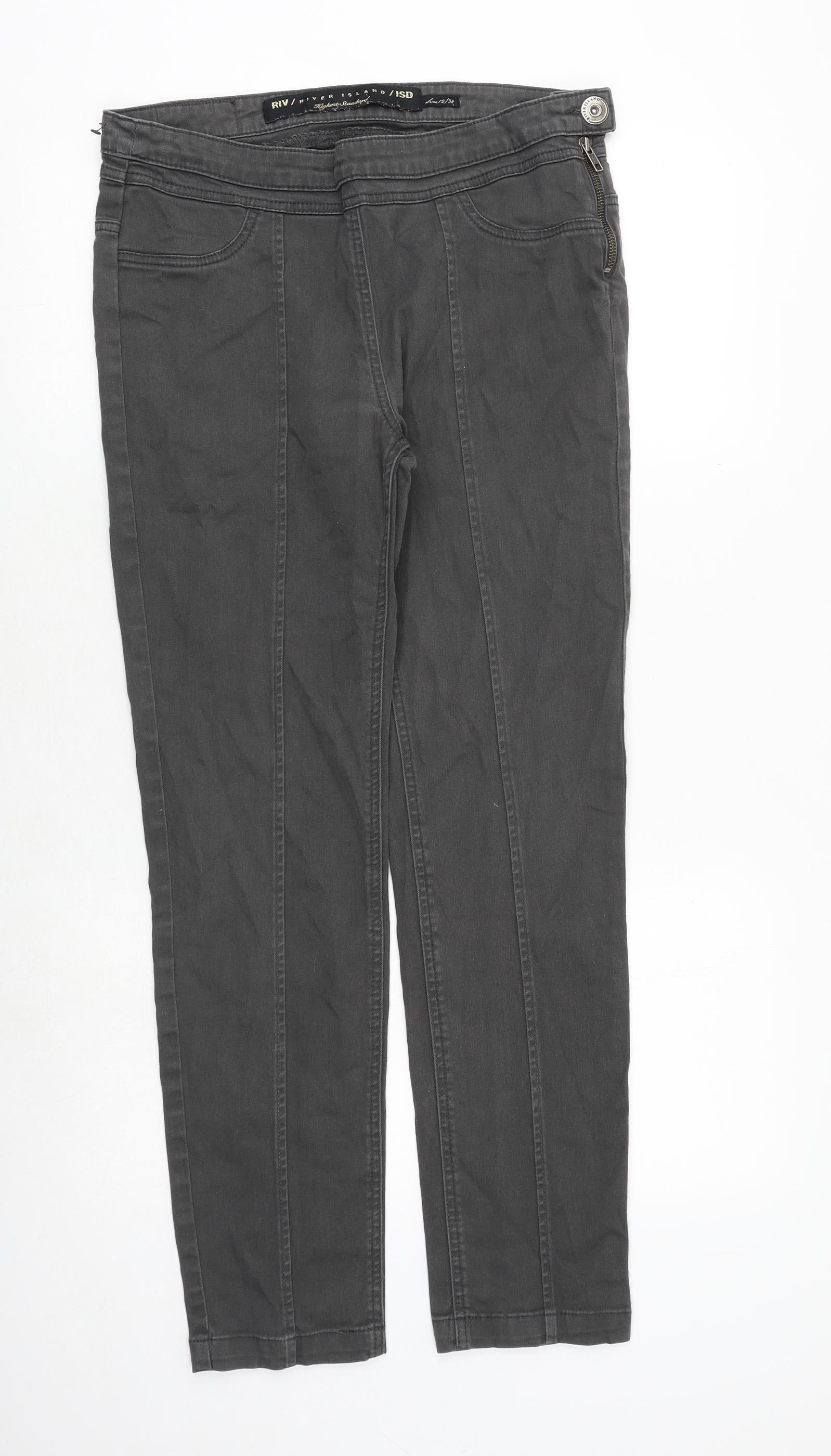 River Island Womens Grey Cotton Straight Jeans Size 12 Regular Zip