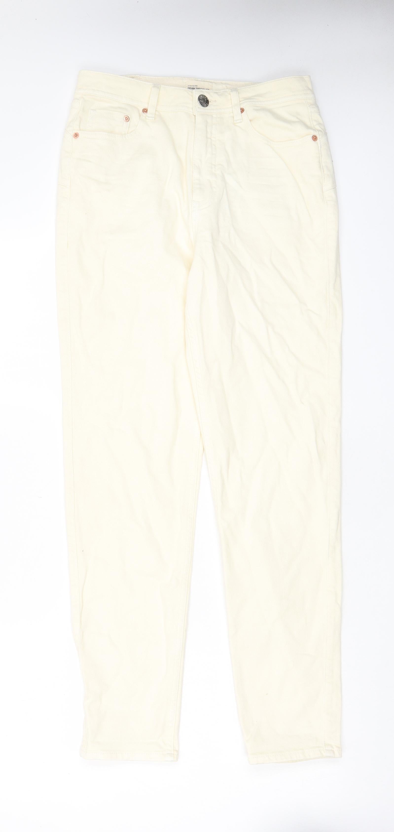 River Island Womens Ivory Cotton Mom Jeans Size 10 L30 in Regular Zip - Pockets