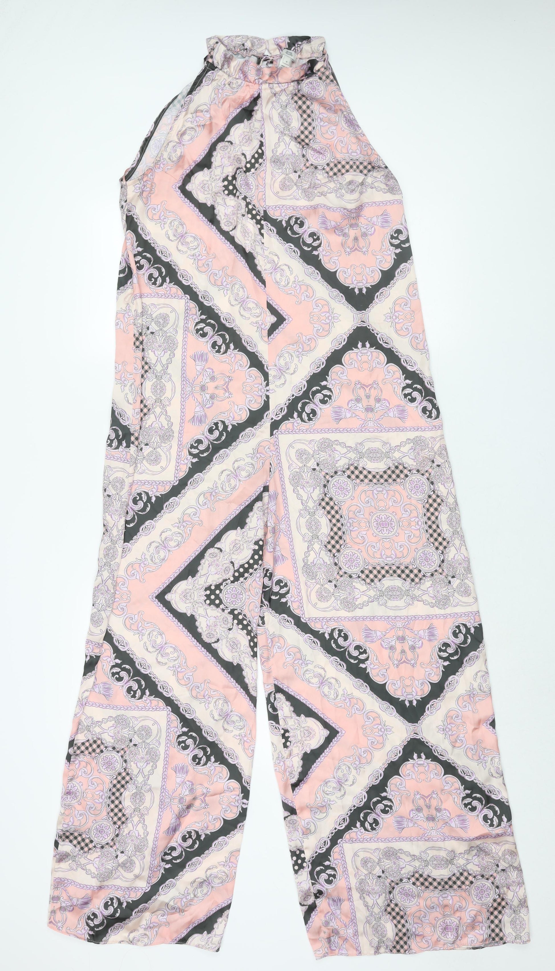 River Island Womens Pink Geometric Polyester Jumpsuit One-Piece Size 8 L28 in Tie - Frill