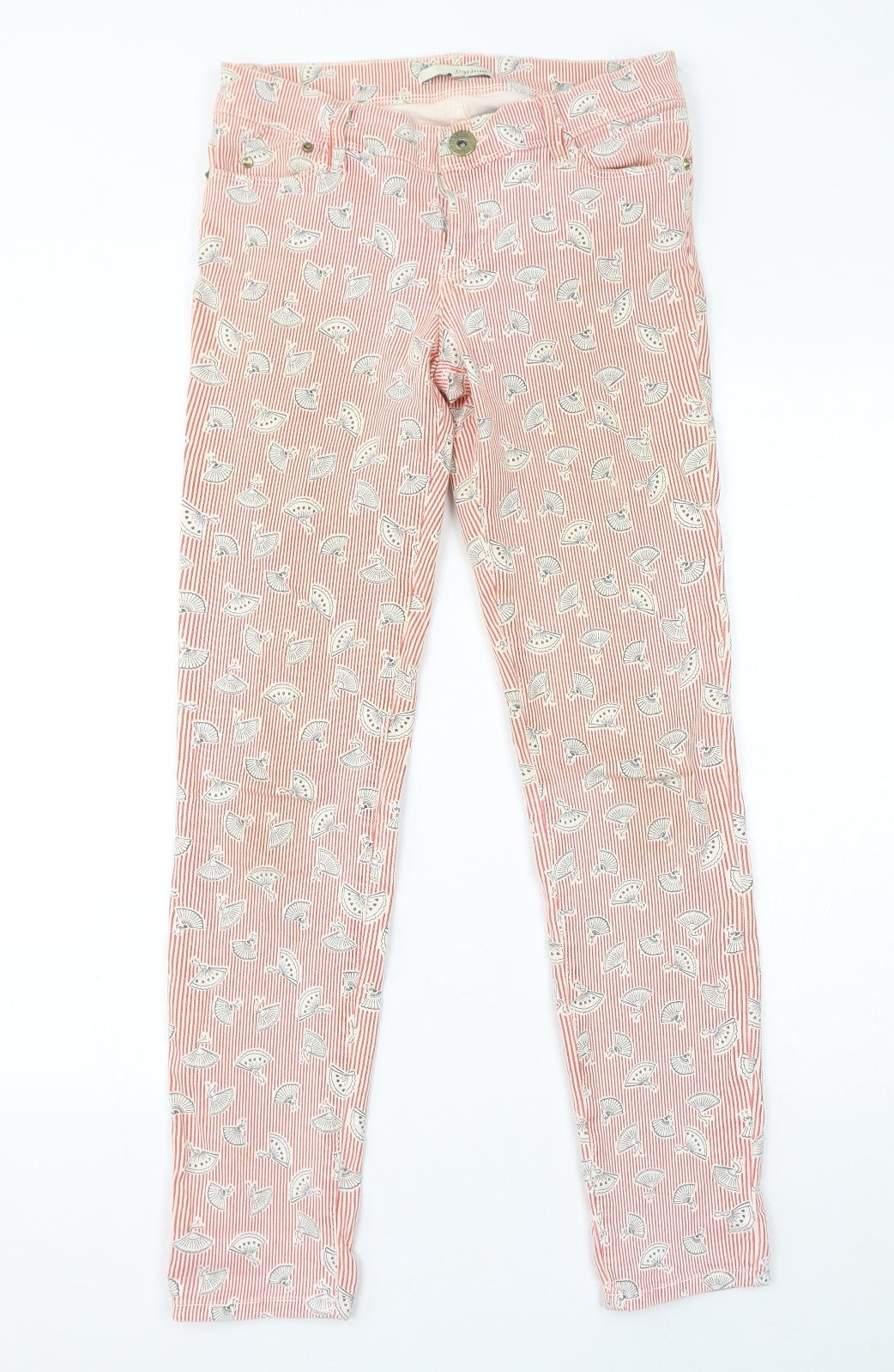 River Island Womens Red Striped Cotton Tapered Jeans Size 8 L30 in Regular Zip - Fans