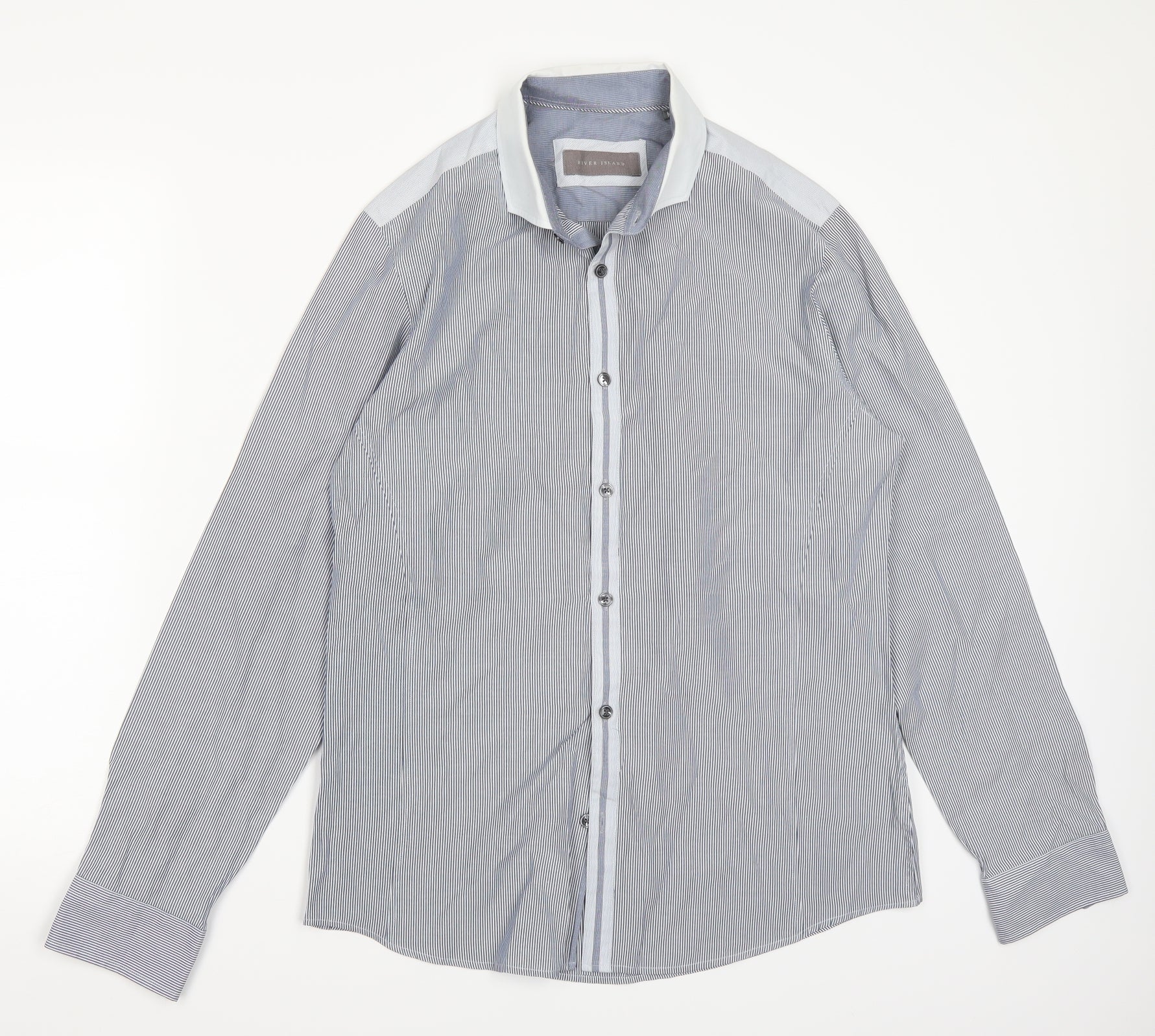 Riverisland Mens Blue Striped Button-Up Size M