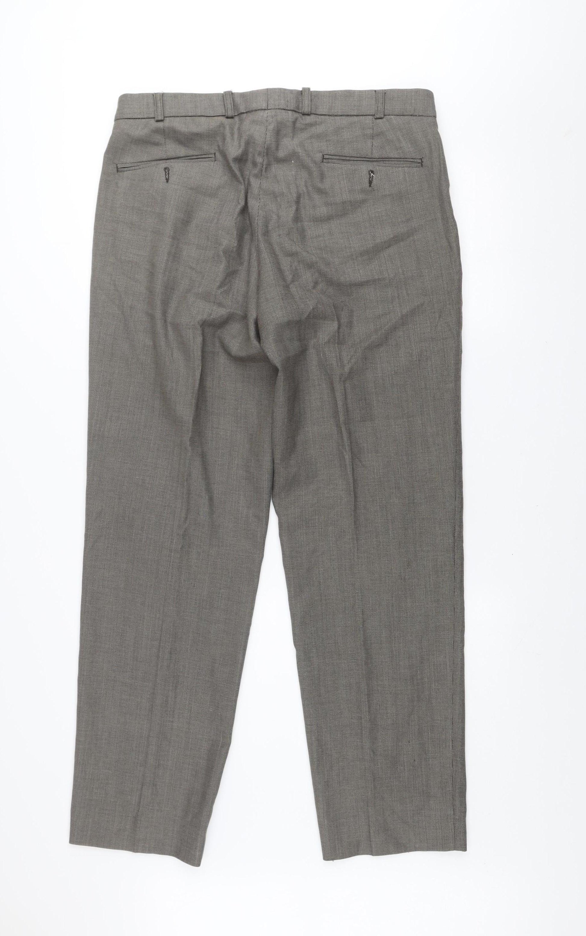 Robbie Men's Grey Check Dress Pants Size 36R Wool Blend Formal Trousers